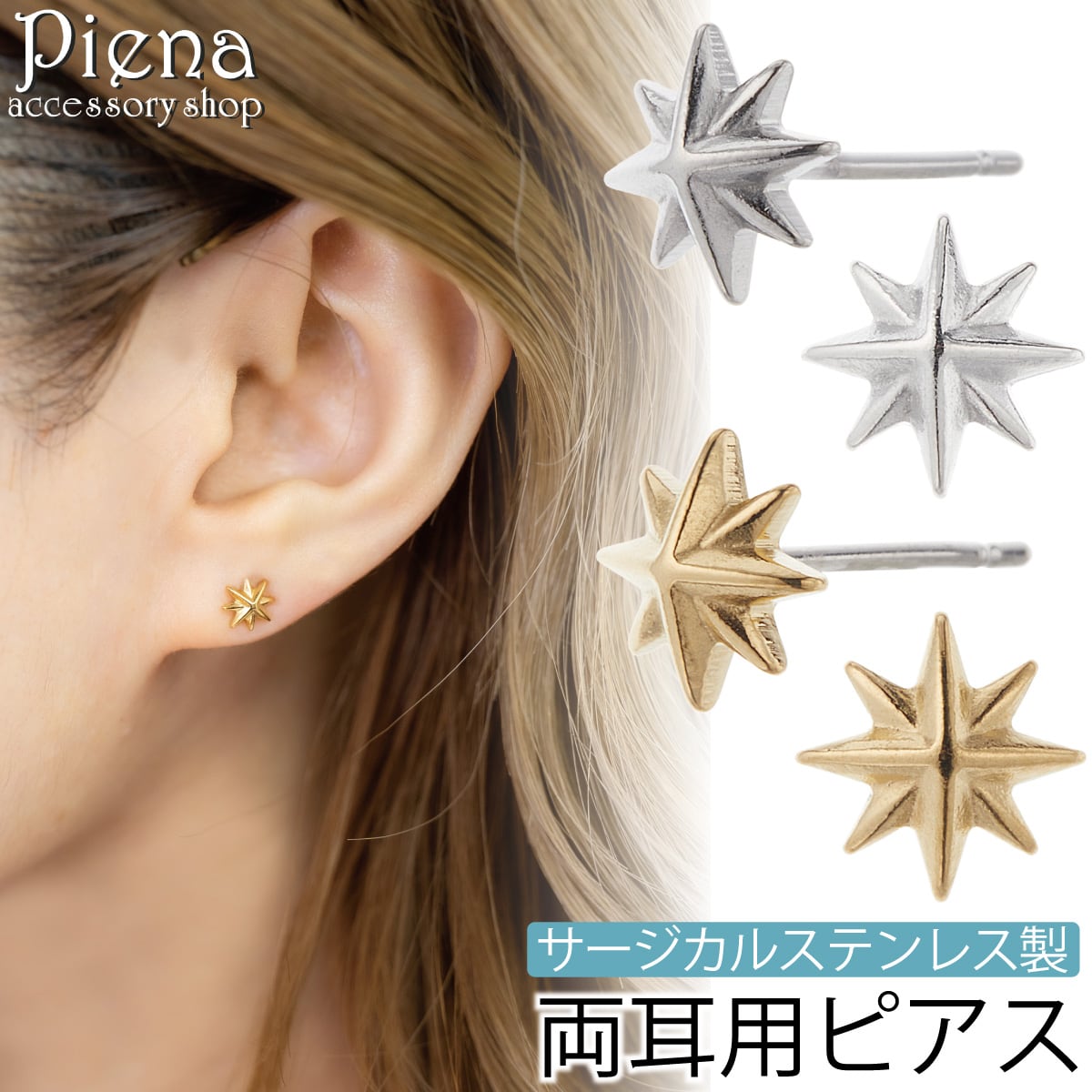 ピアス レディース ss-st-064 両耳用 サージカルステンレス製 スター 星 八芒星 オクタグラム シンプル ミニ 小さめ お肌に優しい金属 金属アレルギー対応 カジュアル かわいい 誕生日 記念日 プレゼント ギフト メール便送料無料