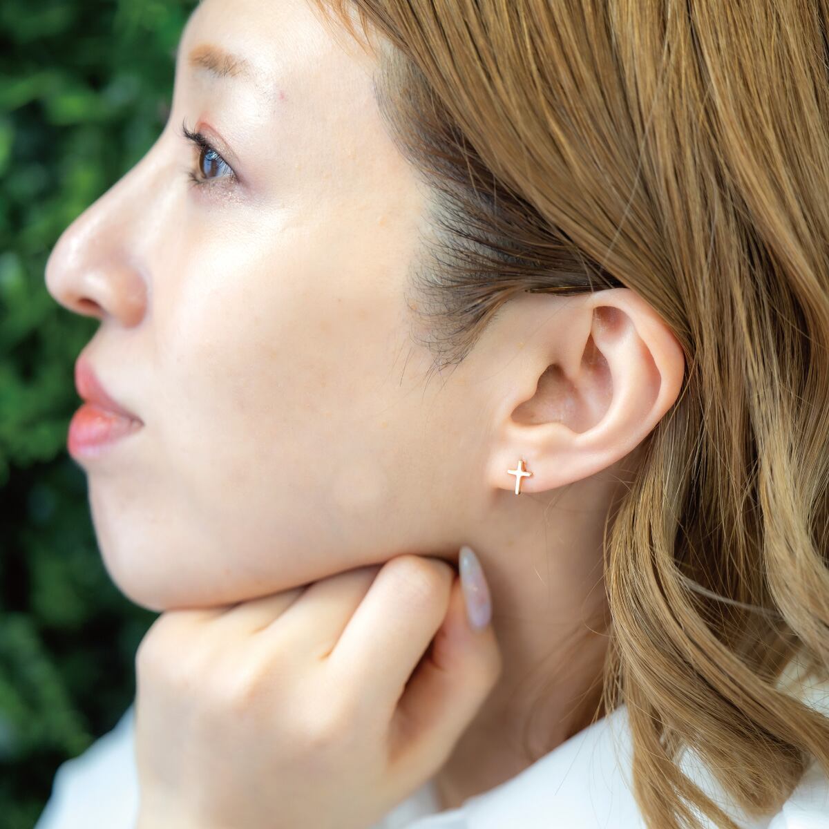 光を受けてシャープに輝き耳元にクールなアクセントをプラス。