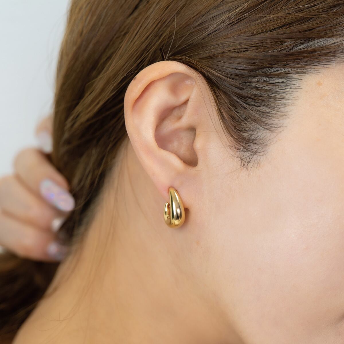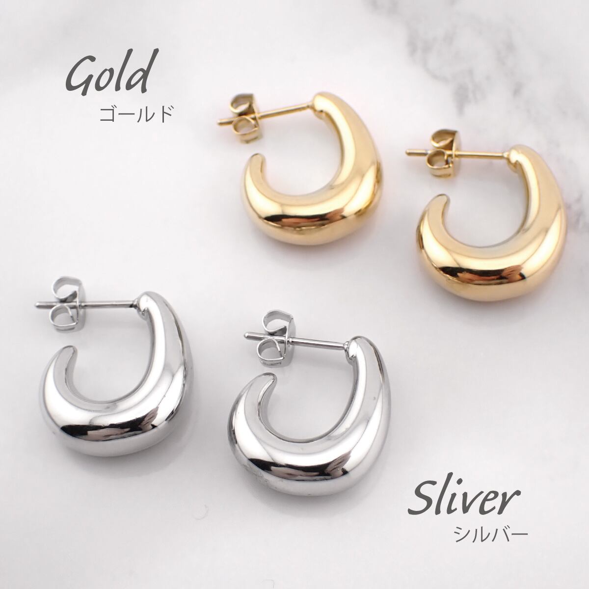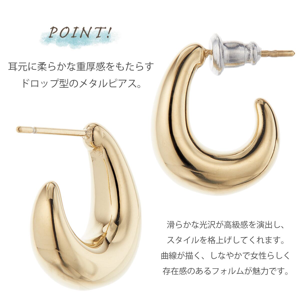 耳元に柔らかな重厚感をもたらすメタルピアスです。