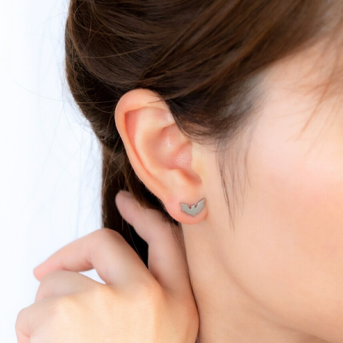 ピアス コウモリ サージカルステンレス レディース 金属アレルギー対応 両耳用 シンプル 可愛い 大人 小ぶり スタッドピアス ハロウィン ゴールド シルバー ブラック ピンクゴールド アクセサリー カジュアル 誕生日 記念日 プレゼント ギフト メール便送料無料