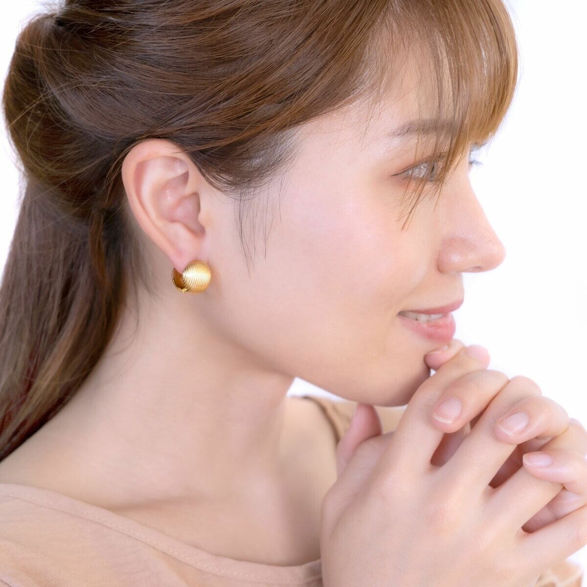 耳たぶを包み込むようにデザインされた4つのモチーフから選べるワンタッチピアス。