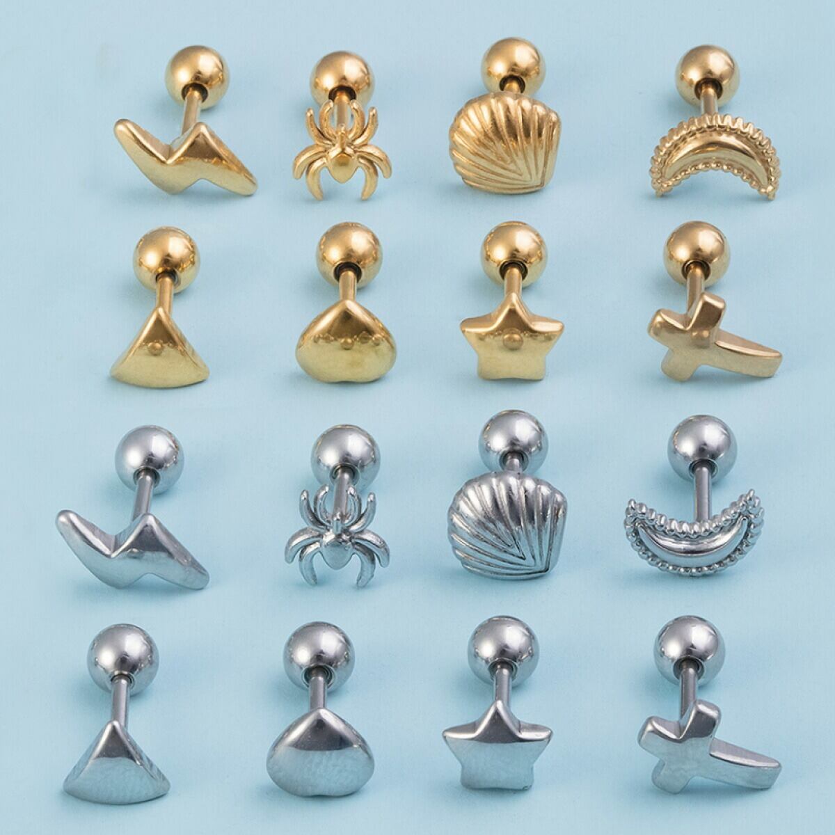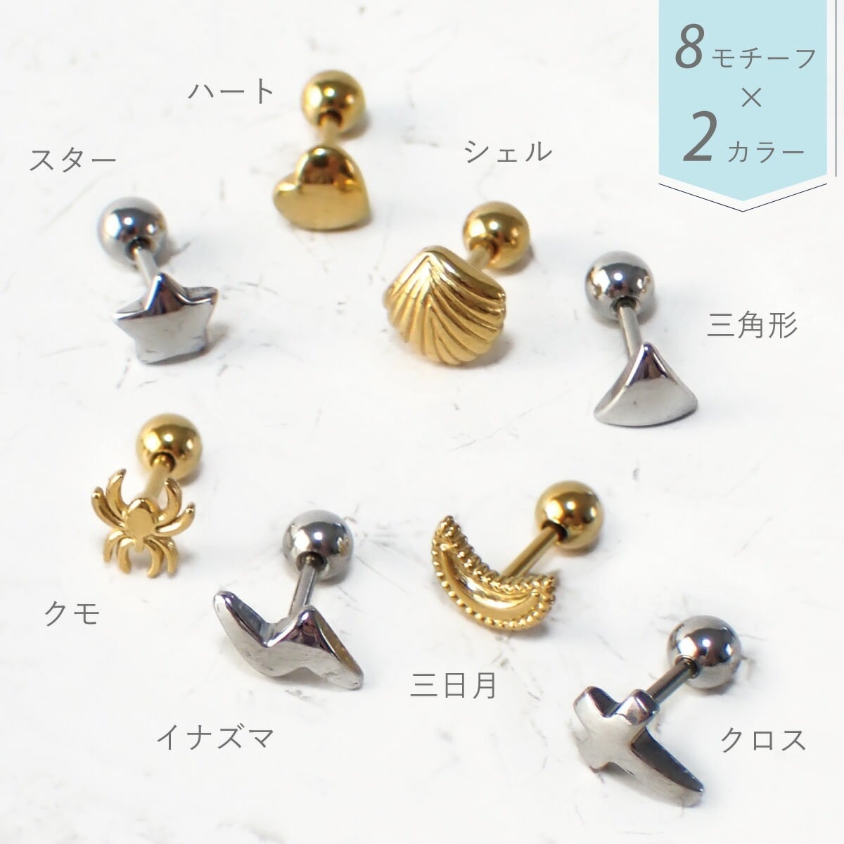 ピアス つけっぱなし レディース メンズ サージカルステンレス 片耳用 1個売り 18G ボディピアス 裏ねじピアス ネジ式 クロス ハート スター 貝 シェル 蜘蛛 クモ シンプル お肌に優しい 金属アレルギー対応 金アレ かわいい オシャレ 誕生日 記念日 プレゼント ギフト