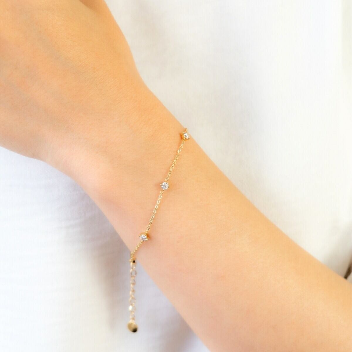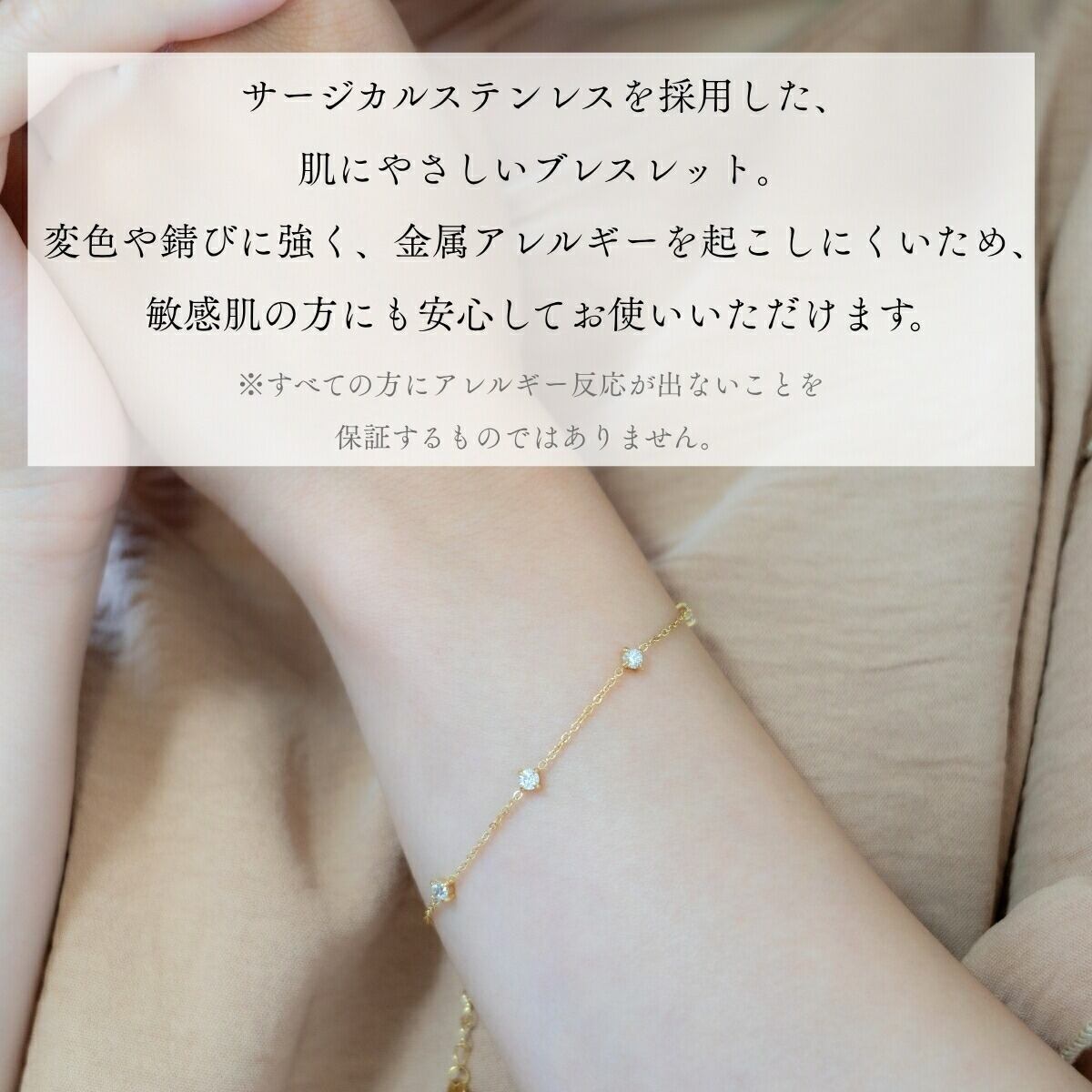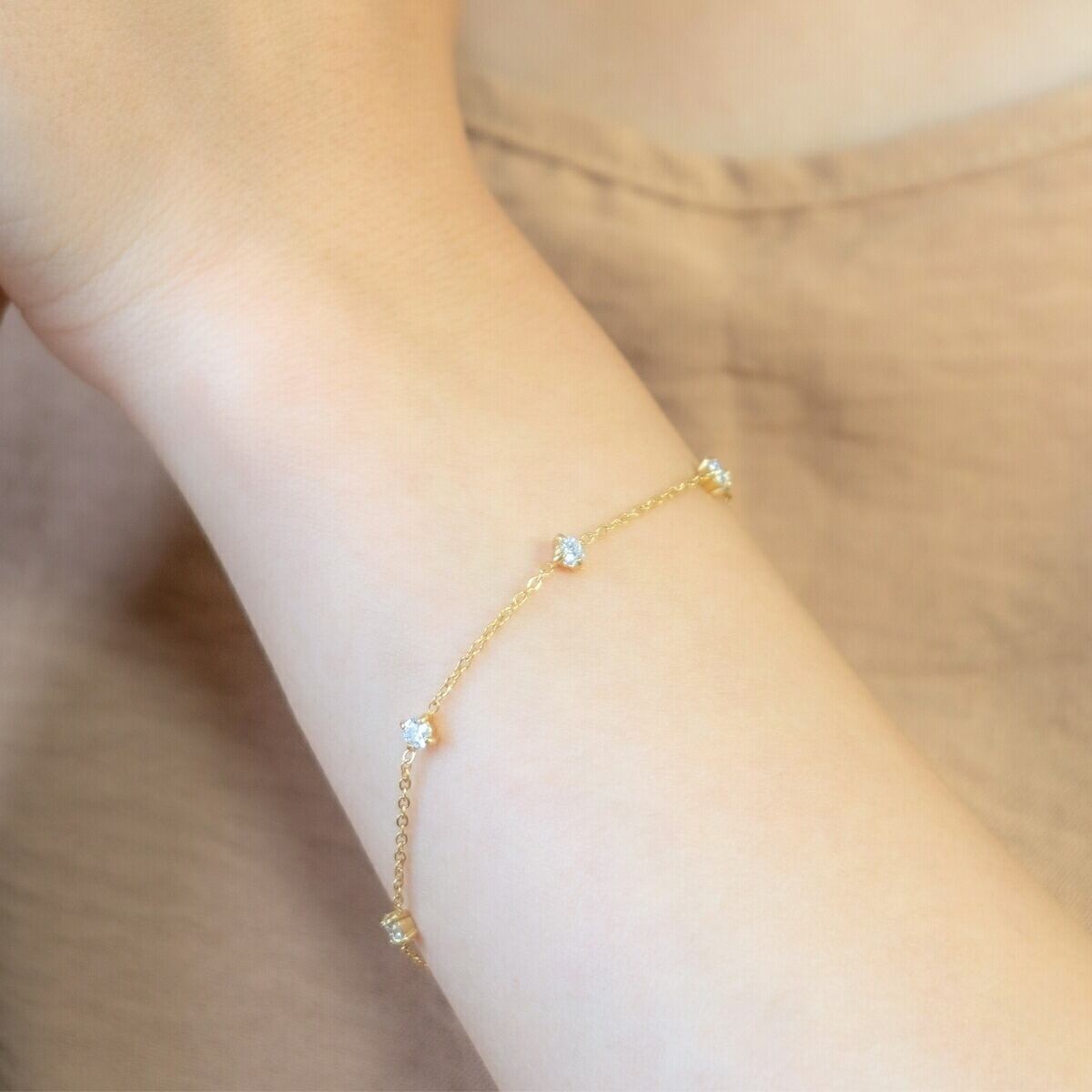 ブレスレット レディース サージカルステンレス 金属アレルギー対応 チェーンブレスレット 小粒ストーン 華奢 シンプル 上品 可愛い シルバー ゴールド アクセサリー カジュアル フォーマル 重ね付け プレゼント ギフト 誕生日 記念日 メール便送料無料