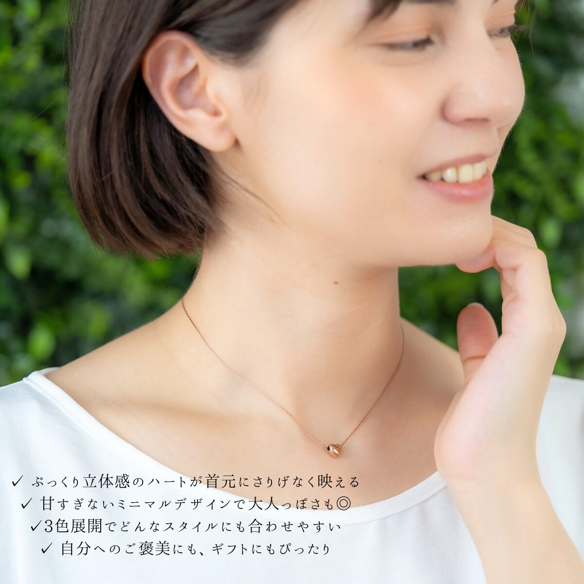 華奢なチェーンに、シンプルなハートのトップが上品に揺れるネックレス。