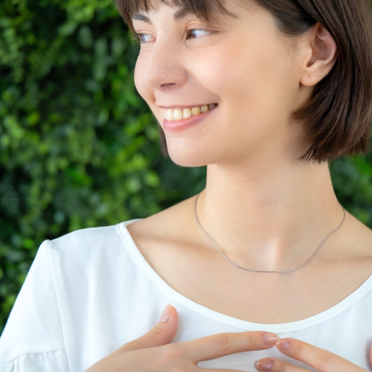 アジャスター付きのチェーンですので、40cmから45cmの間で長さを調節してご使用頂けます。