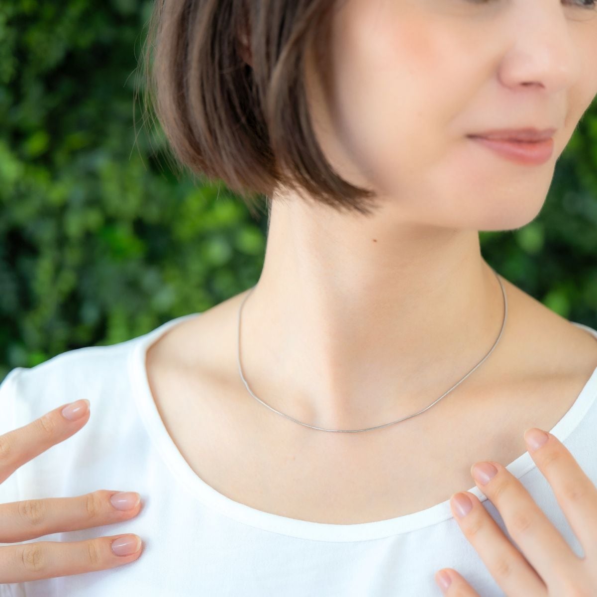 アジャスター付きのチェーンですので、40cmから46cmの間で長さを調節してご使用頂けます。