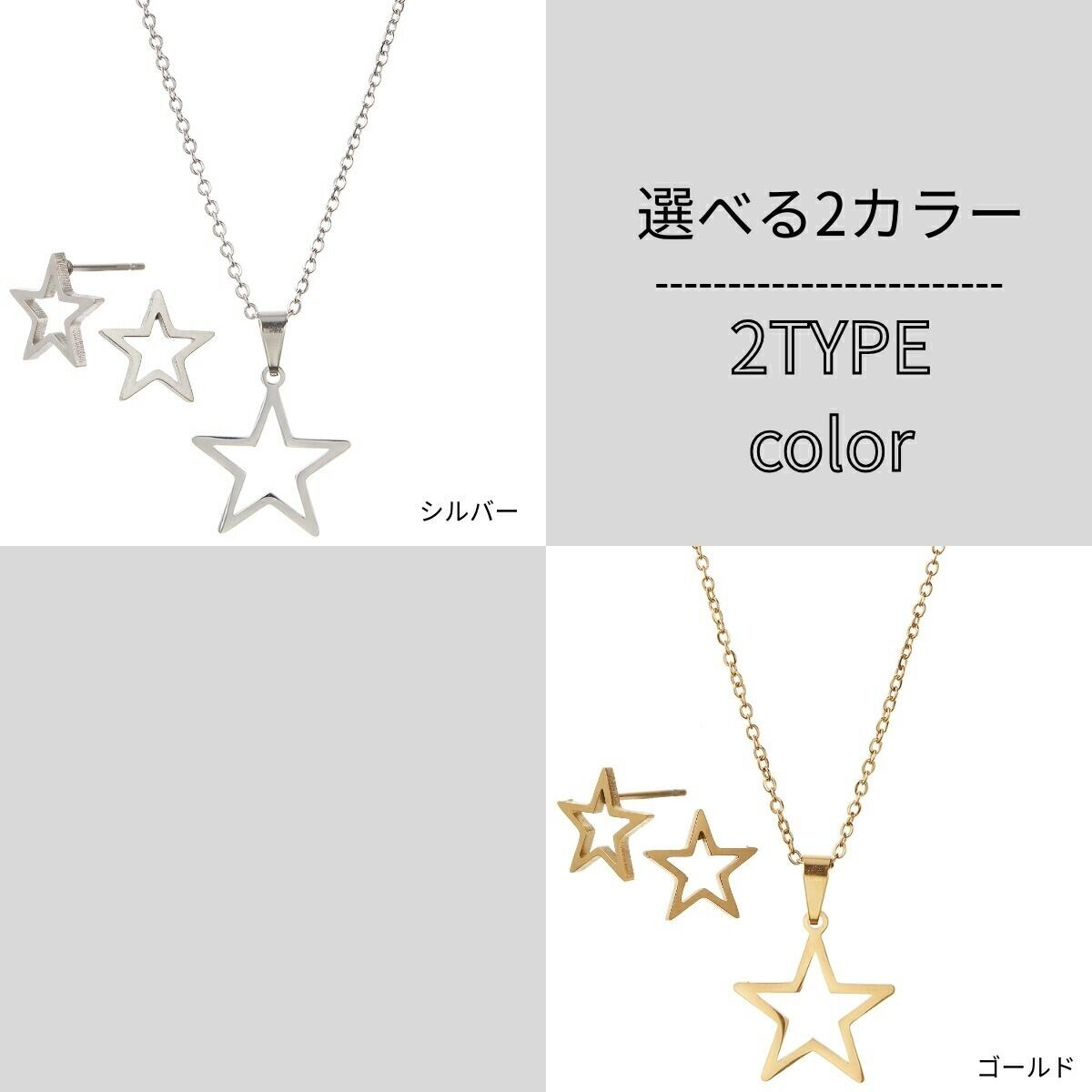 ネックレス ピアス 2点セット スター サージカルステンレス レディース 金属アレルギー対応 星モチーフ シンプル 上品 可愛い 小ぶり 大人 カジュアル ゴールド シルバー プレゼント ギフト 誕生日 記念日 クリスマス メール便送料無料