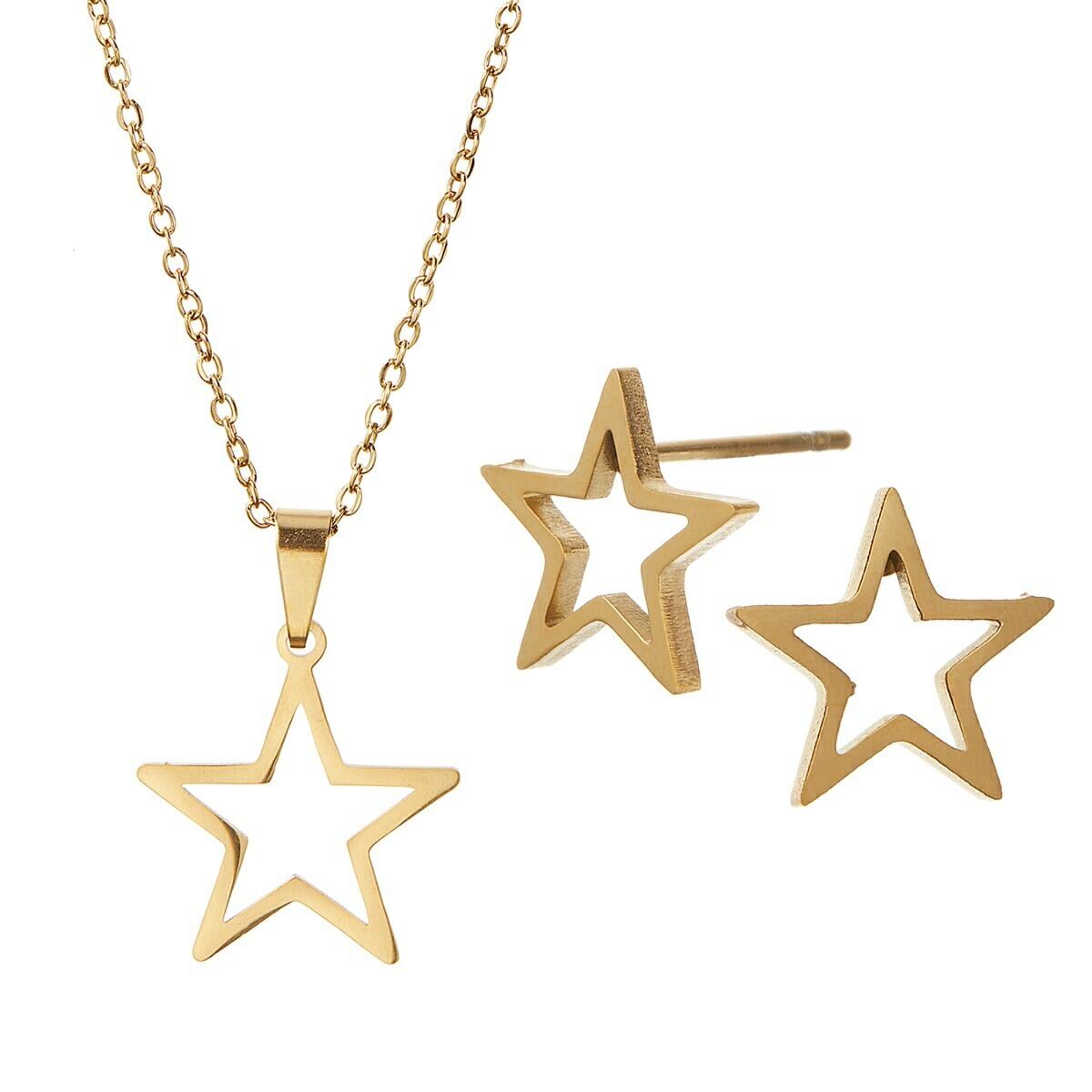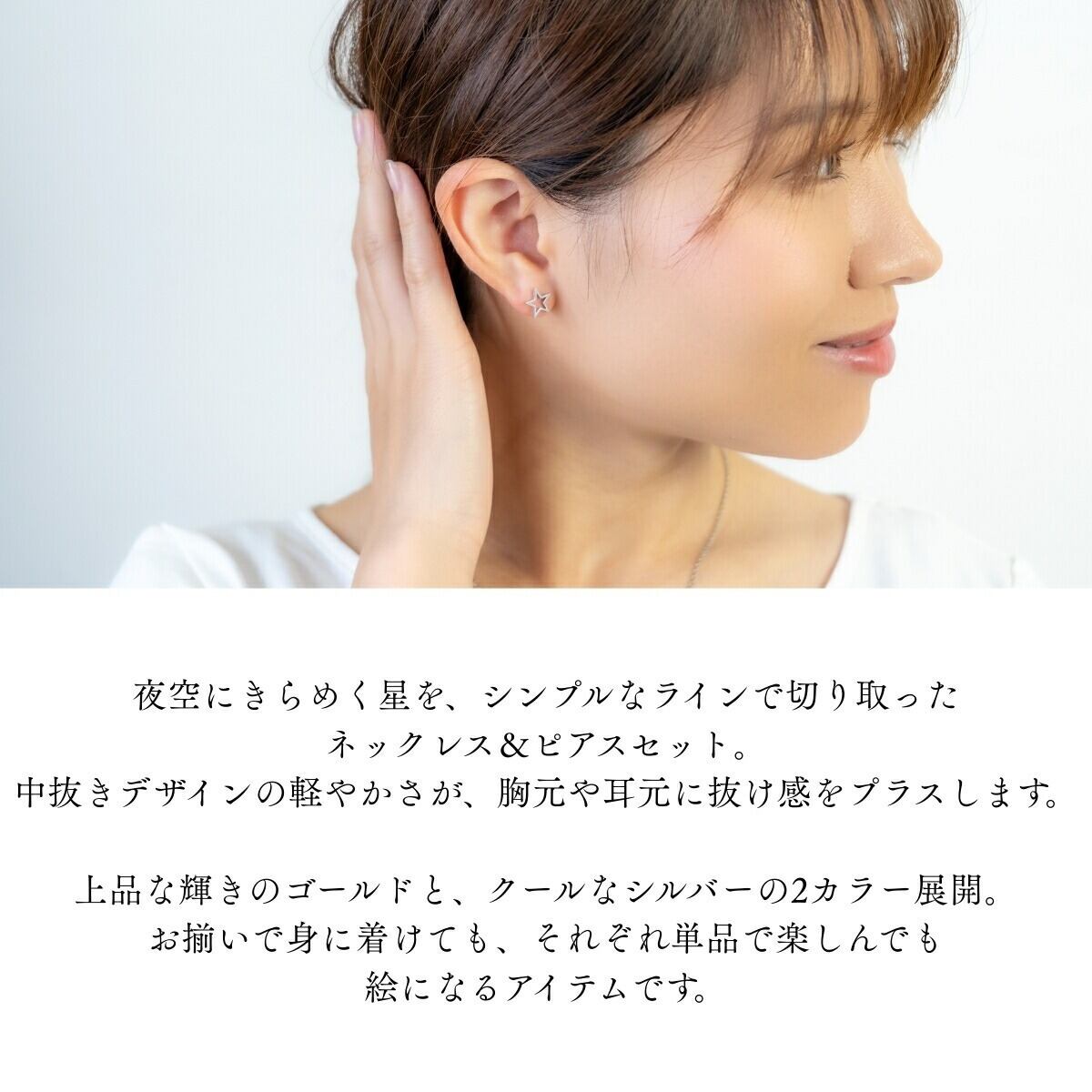 シンプルで大人可愛い、スターモチーフのネックレス&ピアスの2点セット。