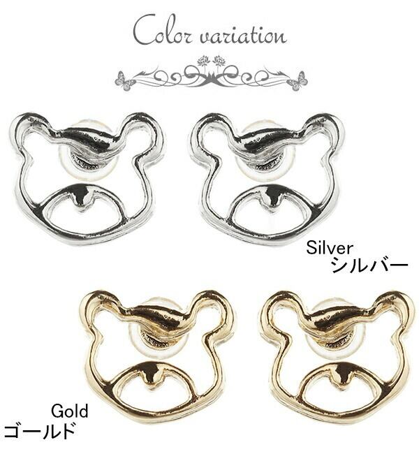 キュートな熊をフレームだけで表現したシンプルな樹脂製スタッドピアスです。