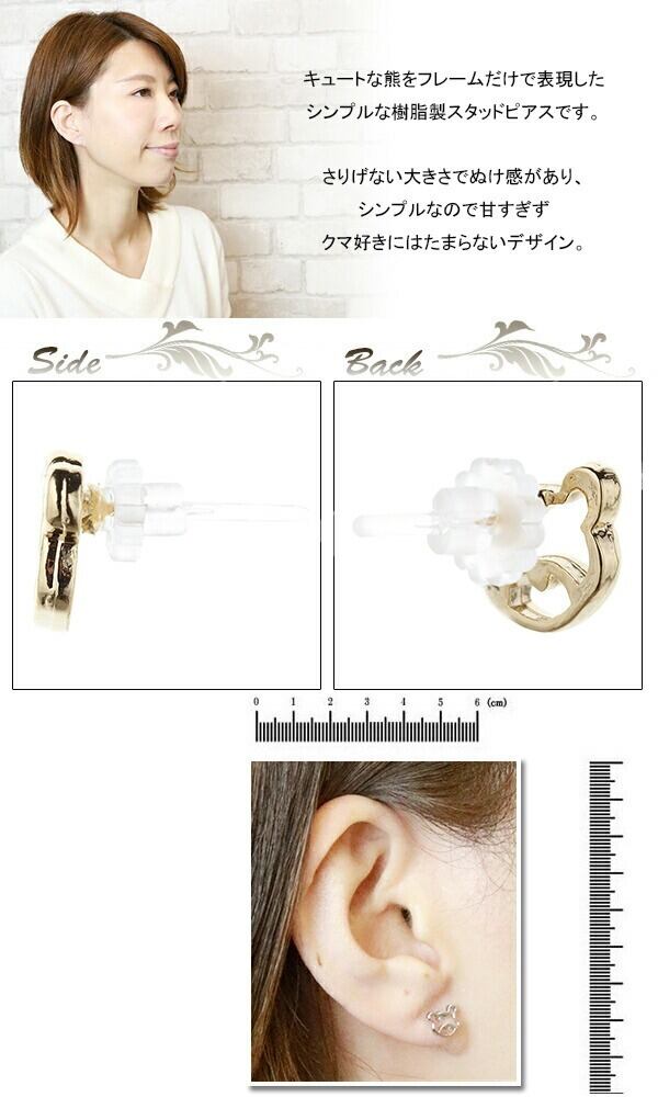 ピアス レディース くま 樹脂 スタッド 金属アレルギー対応 熊 クマ ベアー アニマル 動物 可愛い 日本製 ミニ 小さめ プレゼント ギフト 春夏秋冬 大人気 あす楽