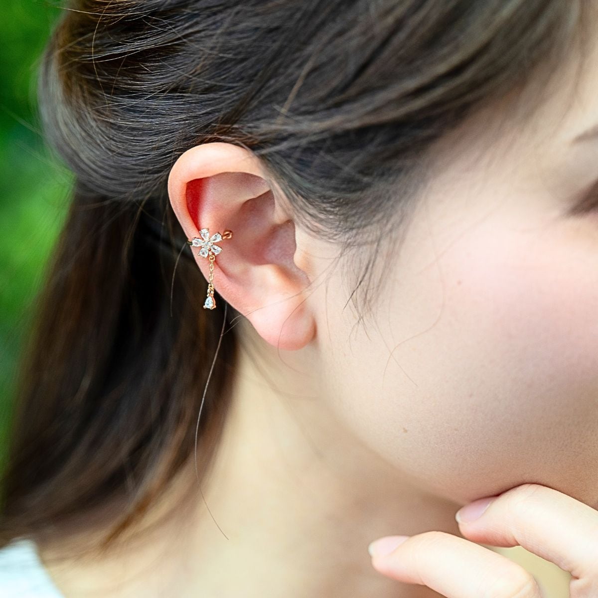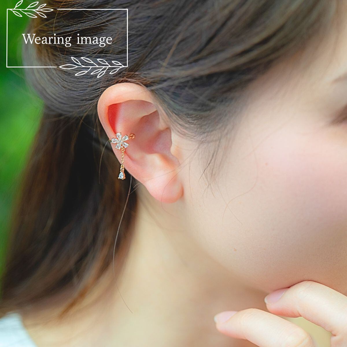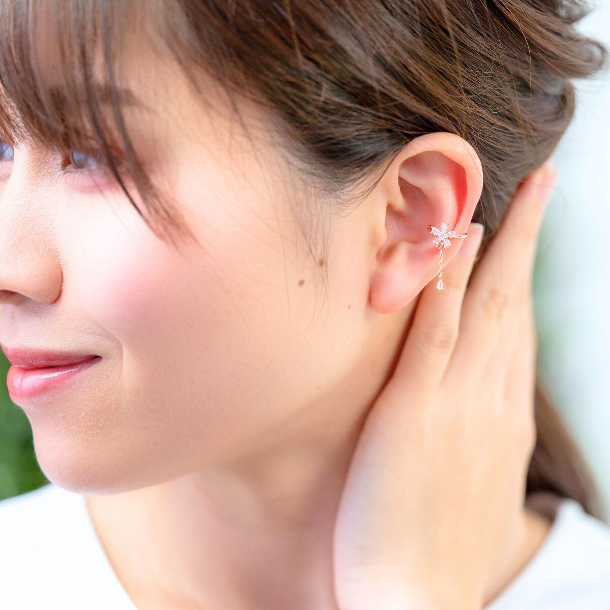 耳に挟むだけで簡単に装着できる、ノンホールタイプのイヤーカフ。