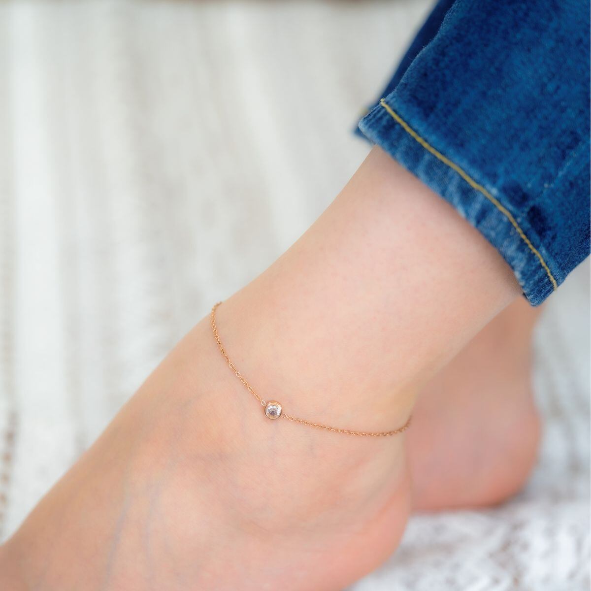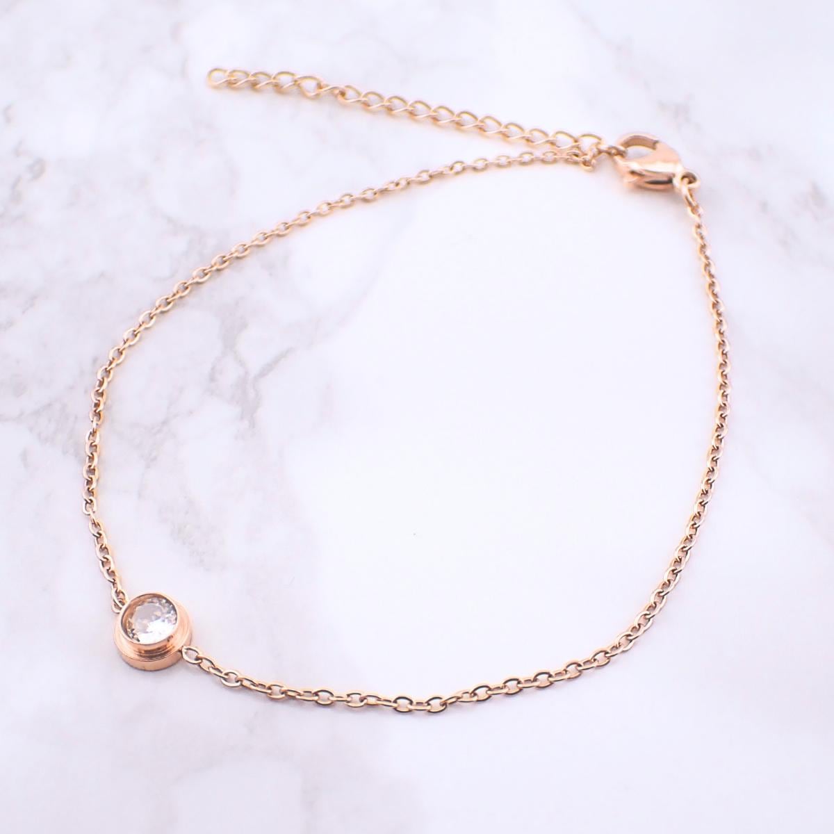 ワンポイントのキュービックジルコニアが印象的なシンプルアンクレット。