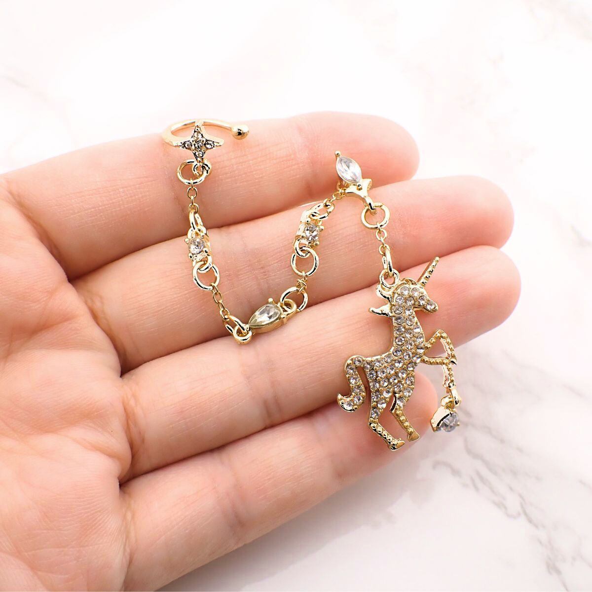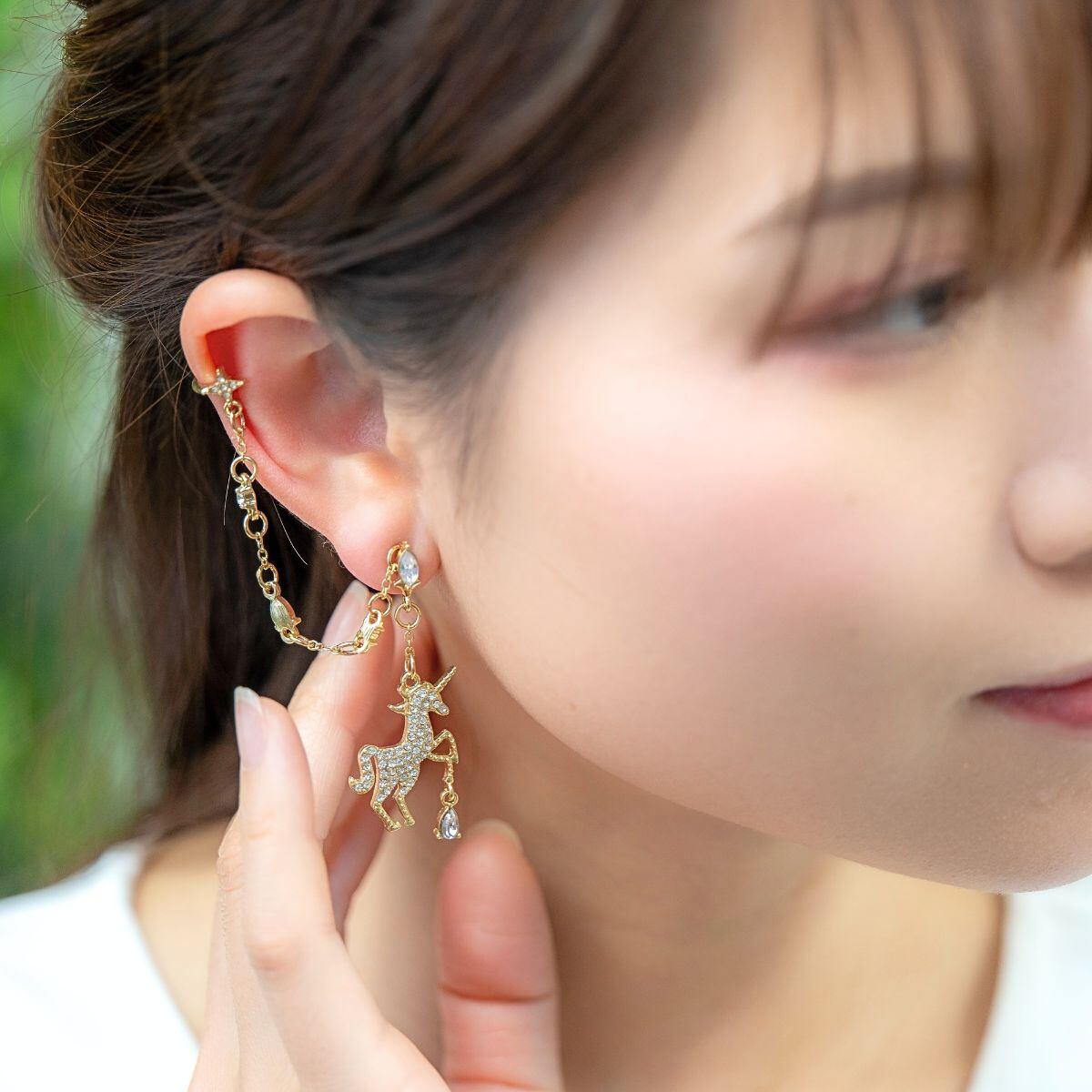 ピアス サージカルステンレス レディース ali-1819033 ユニコーン イヤーカフ チャーム 片側用 ラインストーン 揺れる ロング 韓国 ラグジュアリー 原宿 フェミニン 記念日 ご褒美 メール便送料無料