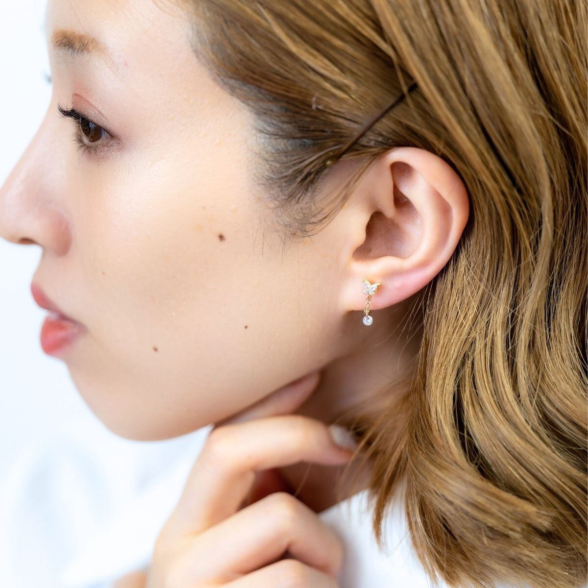 キュービックジルコニアを贅沢にあしらったノンホールピアス。