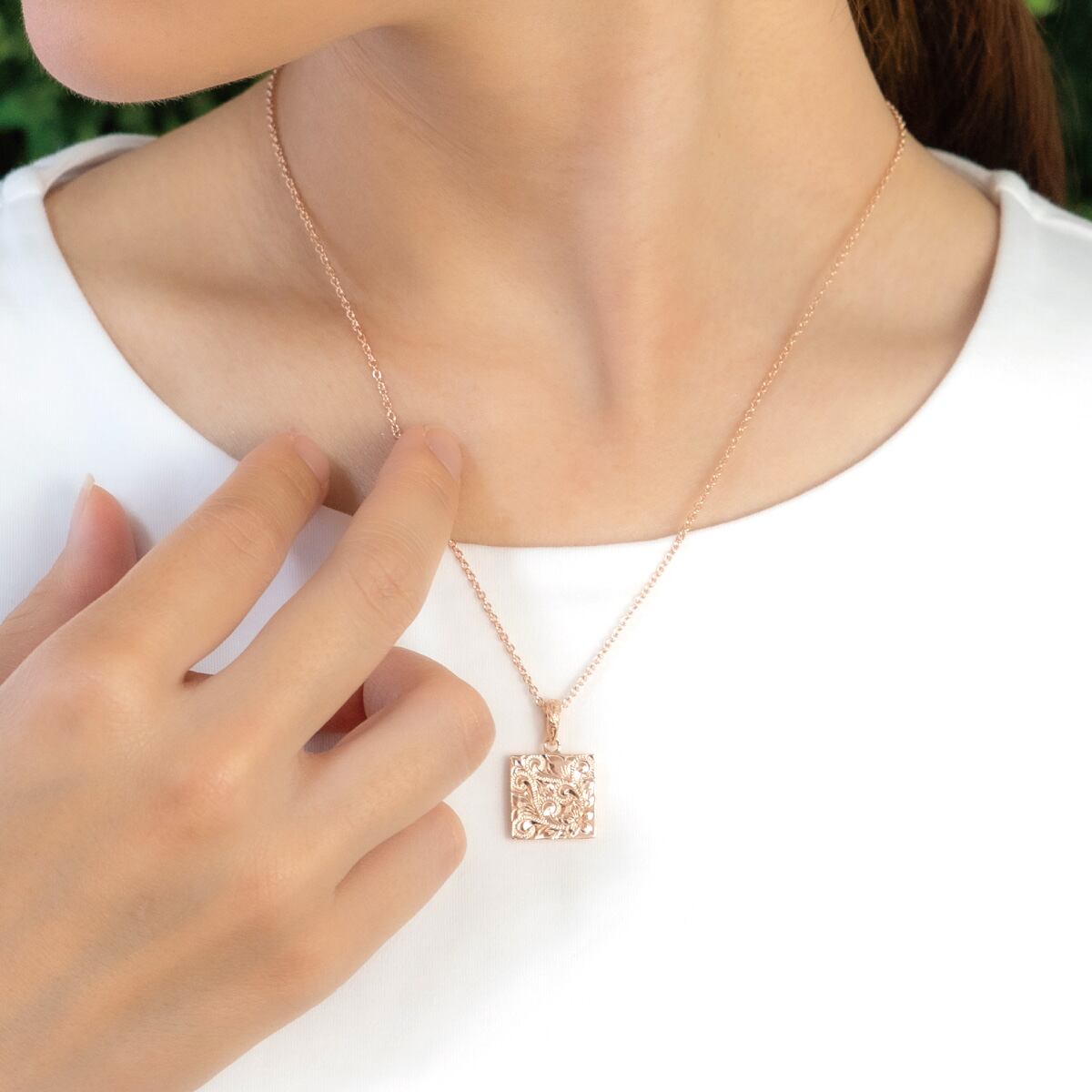 ペンダント ネックレス レディース aab-gpss9004 ハワイアンジュエリー キルト模様 スクエア 四角 リバーシブル プルメリア スクロール 彫刻 模様 お肌に優しい 金属アレルギー対応 プレゼント ギフト 送料無料
