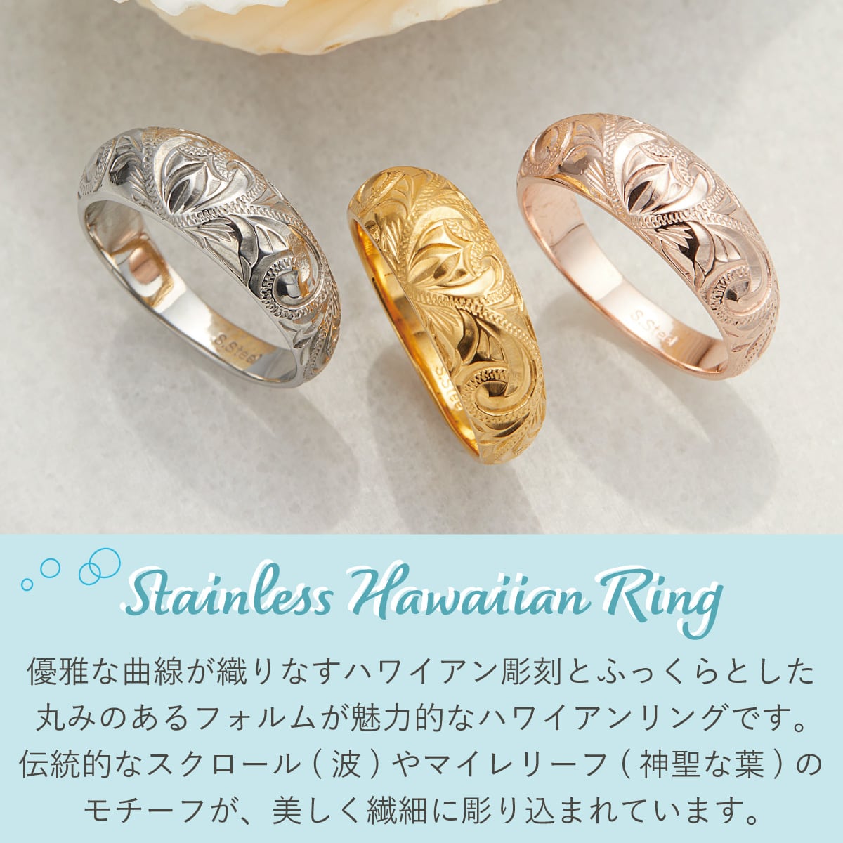 リング レディース メンズ aab-grss8001 サージカルステンレス316L製 ハワイアンジュエリー プルメリア スクロール マイレ 波 マイレ お肌に優しい 金属アレルギー対応 お揃い ペアにも ギフト 送料無料
