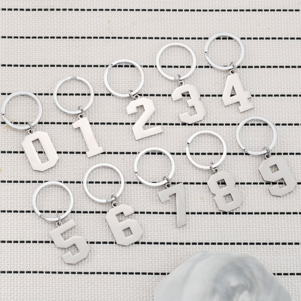シンプルでスタイリッシュな数字モチーフのキーホルダー。