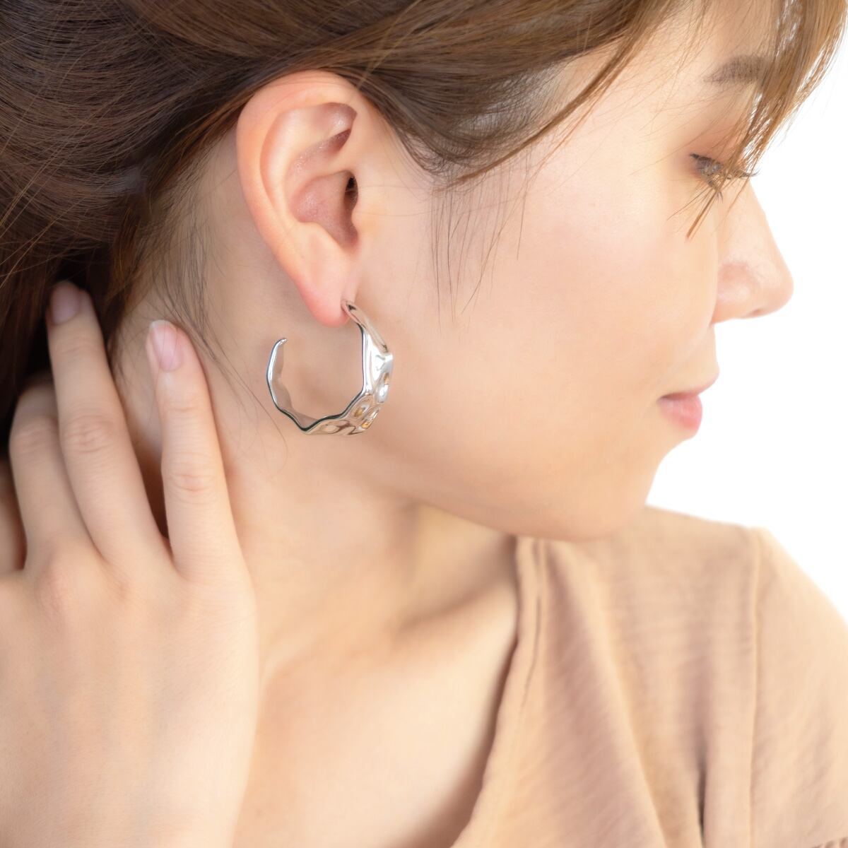 光を多方向に反射し、耳元に奥行きと表情を与えるデザイン。