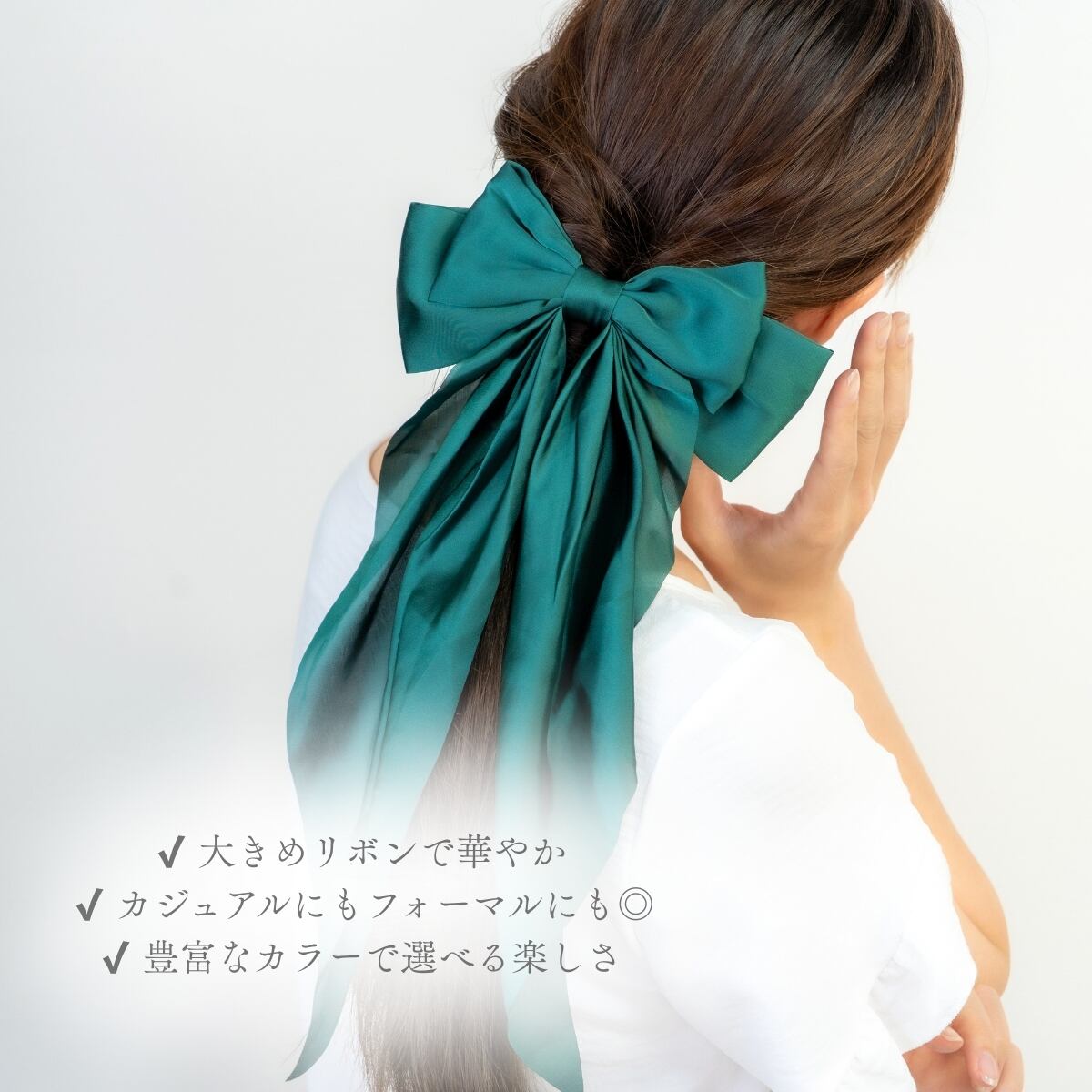 存在感のある大きめリボンが華やかなリボンバレッタ。
