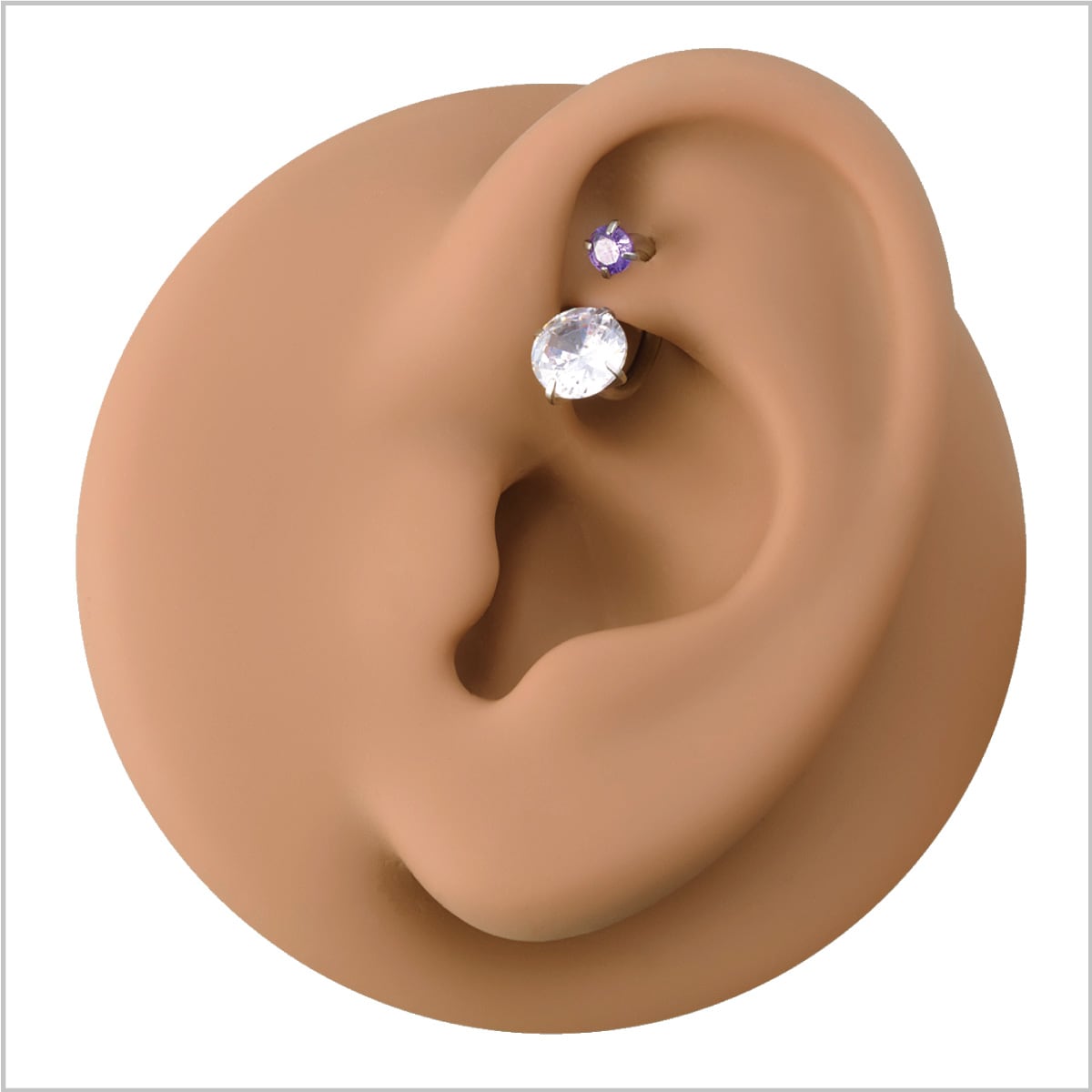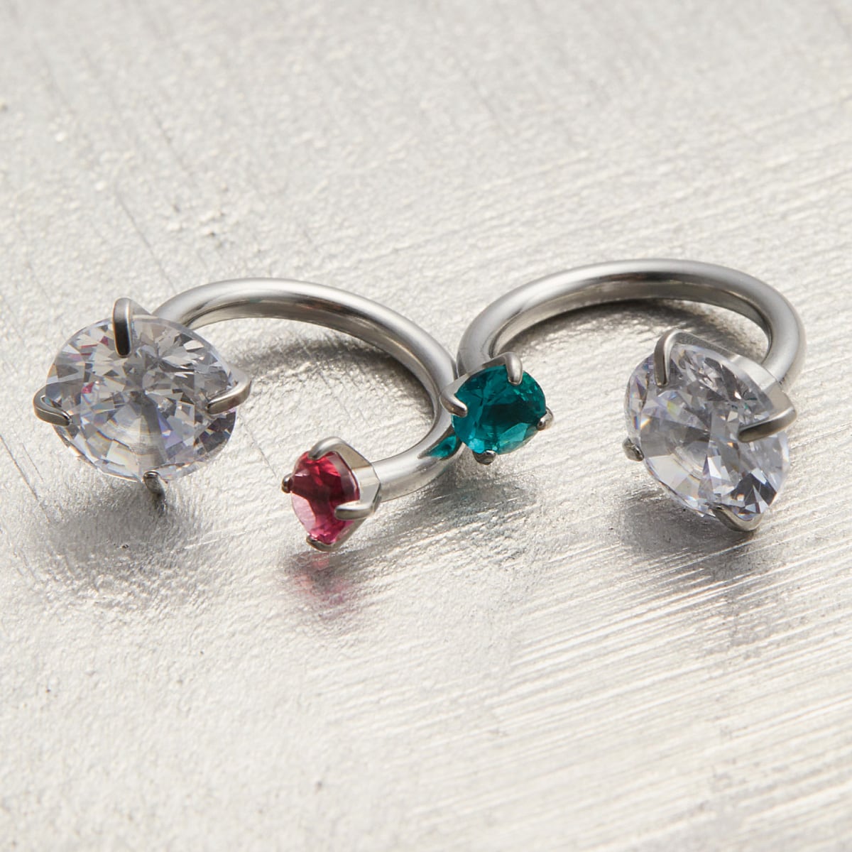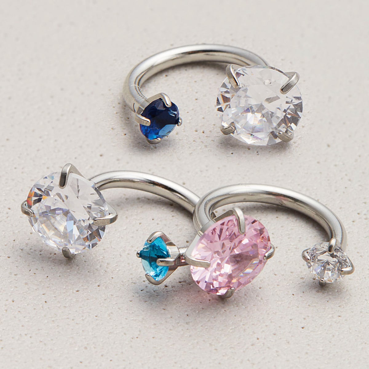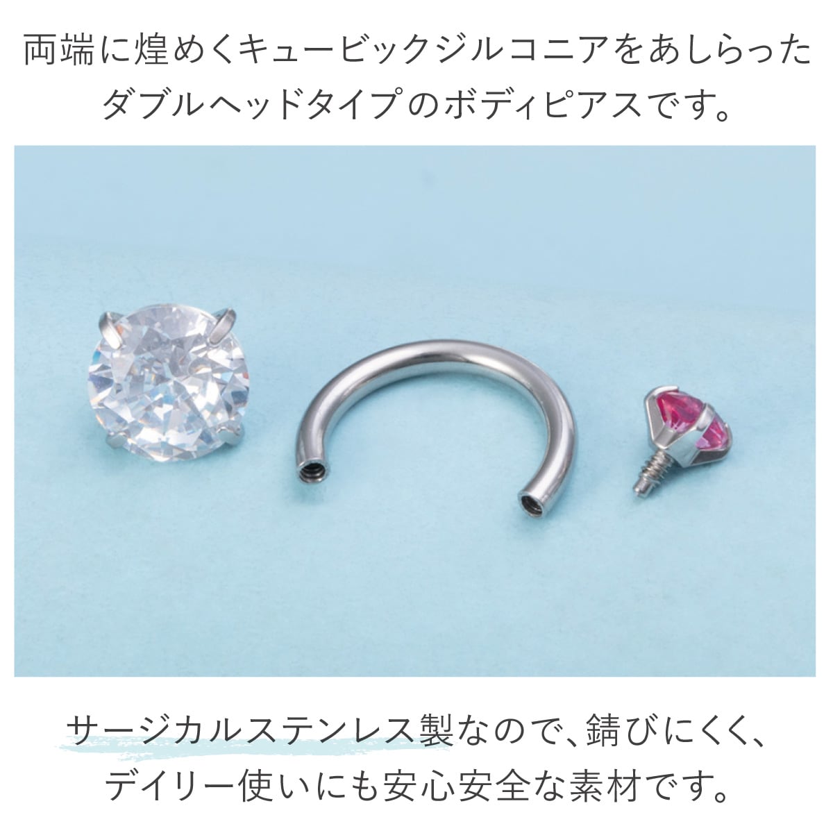 ボディピアス 16G レディース ali-2301594 サージカルステンレス製 キュービックジルコニア 片耳用 1個売り C型 ダブルヘッド 耳たぶ 軟骨ピアス リップピアス キラキラ かわいい