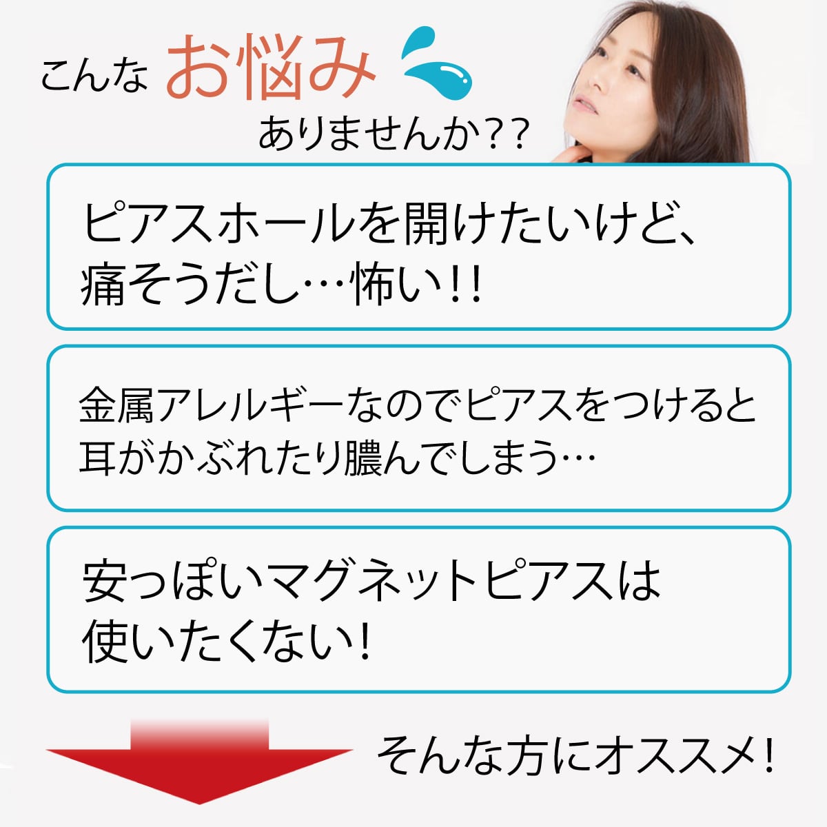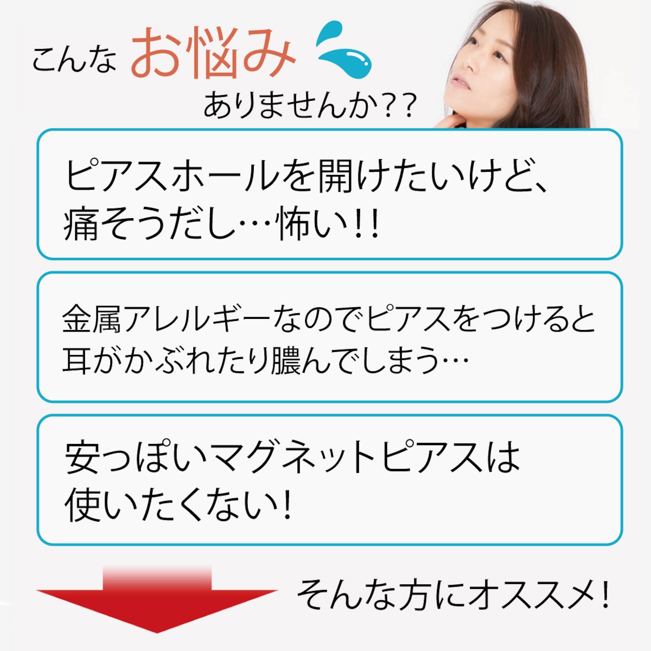 まるで本物のピアスをしているように見える