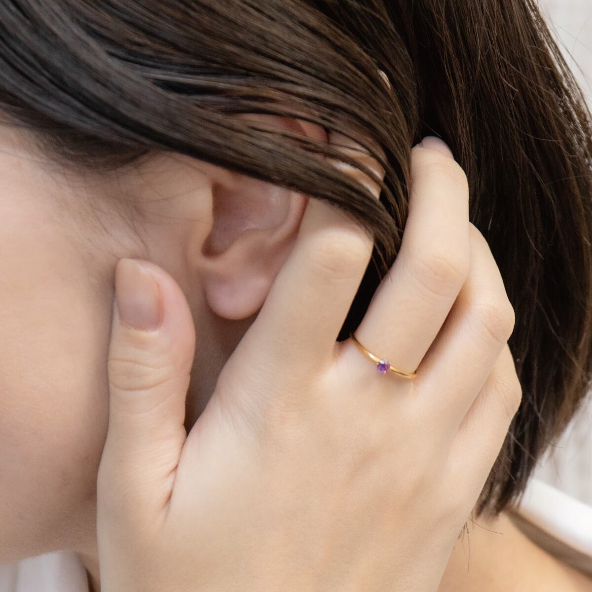 一粒の小さな天然石がさりげなく煌めき、女性らしさを演出。