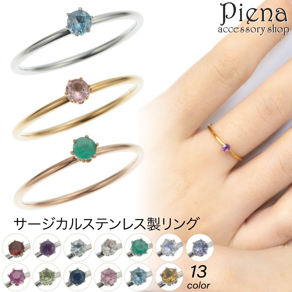 リング レディース tk-tkdstlr-7 天然石 日本製 サージカルステンレス 1粒ジュエリー 1mm 細め 細身 華奢 一石 一粒 金属アレルギー対応 金アレ 上品 かわいい 記念日 ギフト メール便送料無料
