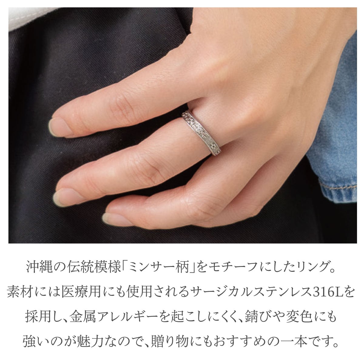 リング レディース メンズ ft-0032-2 サージカルステンレス316L製 沖縄 伝統模様 ミンサー柄 お肌に優しい 金属アレルギー対応 金アレ お揃い ペアにも 記念日 プレゼント ギフト 送料無料