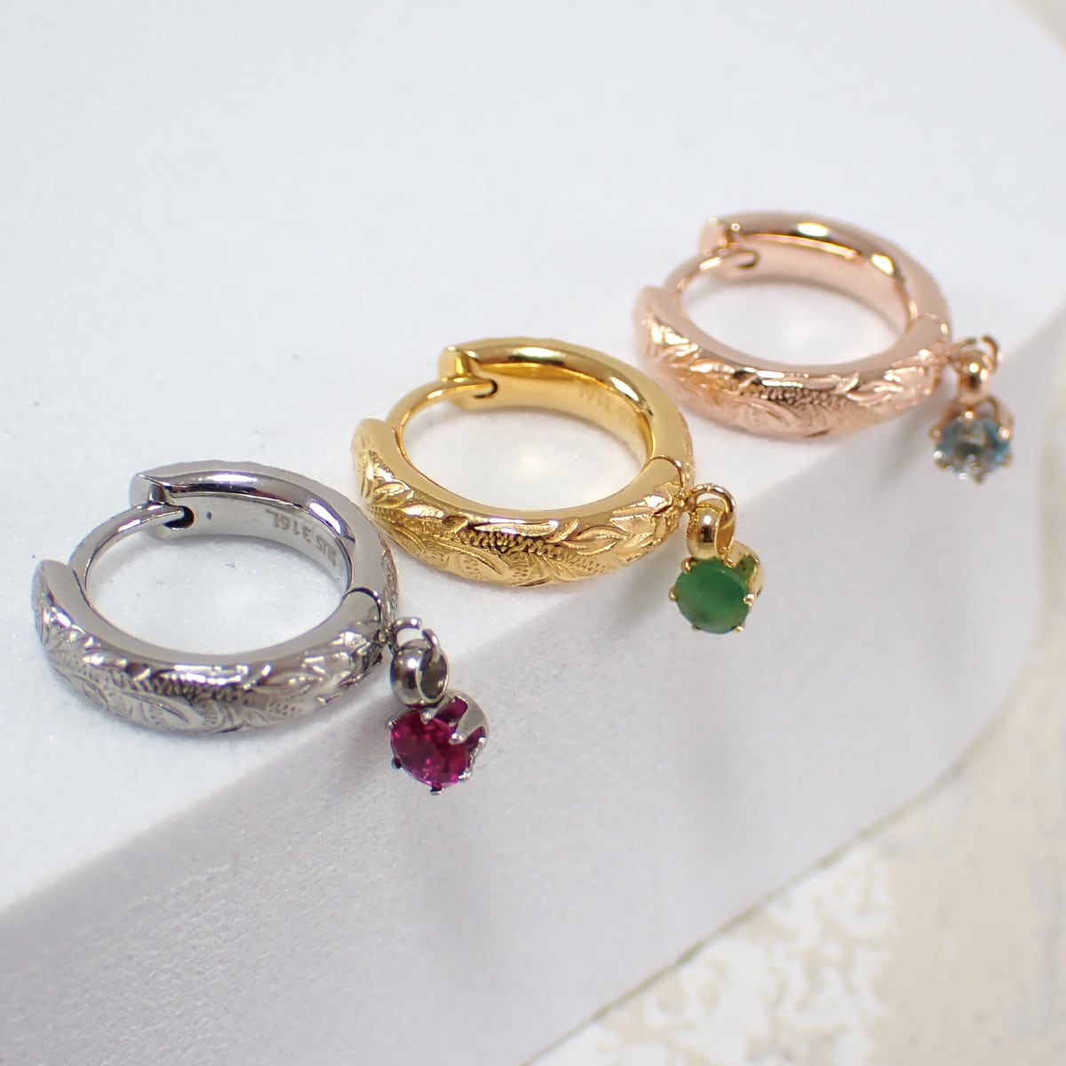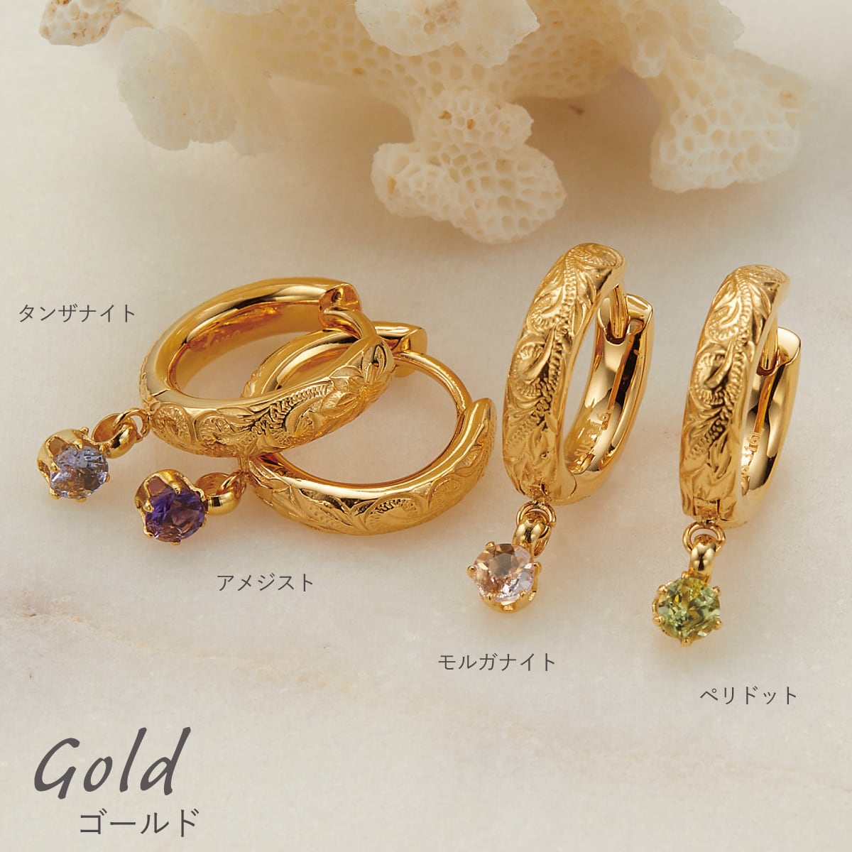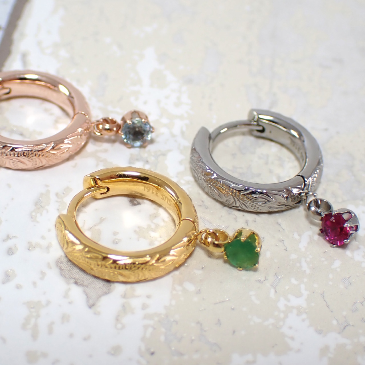 一粒のストーンが揺れ動くエレガントなハワイアンピアスです。