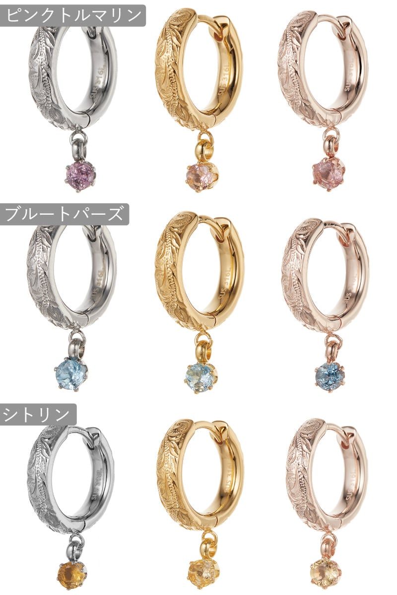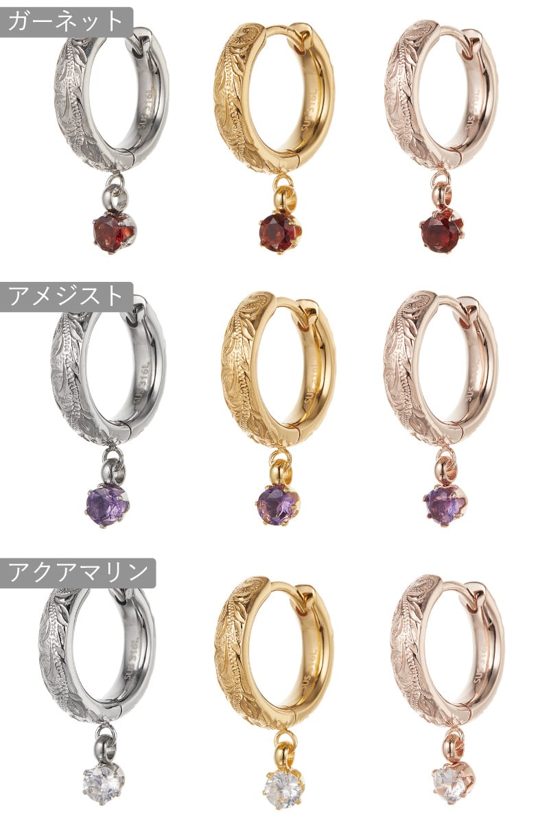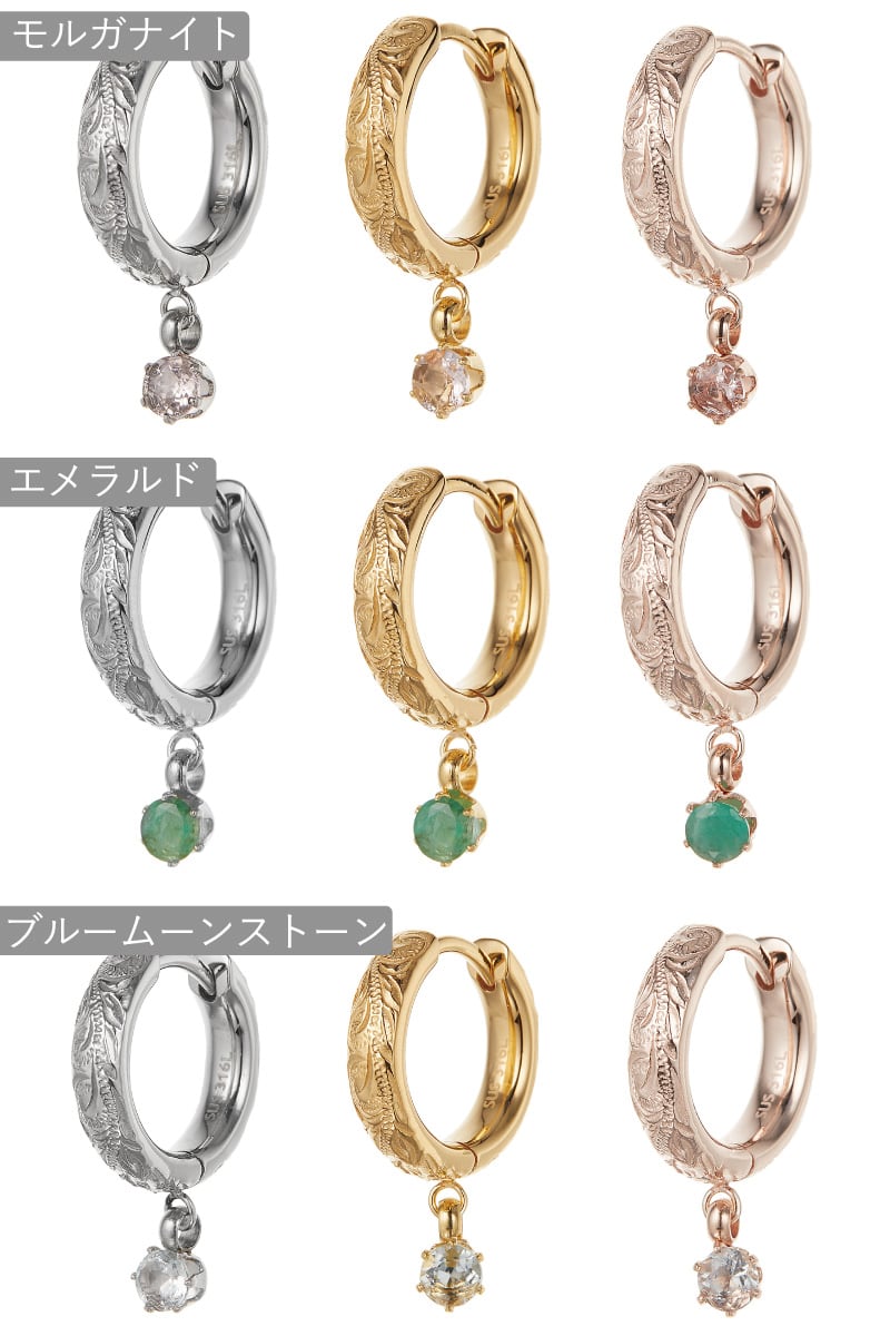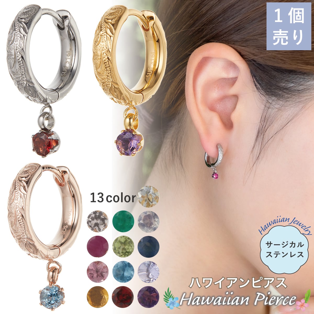ピアス フープ レディース aab-ghss170 片耳用 1個売り サージカルステンレス316L製 ハワイアンジュエリー ワンストーン プルメリア 波 スクロール 中折れ ワンタッチ キャッチレス プレゼント ギフト 送料無料