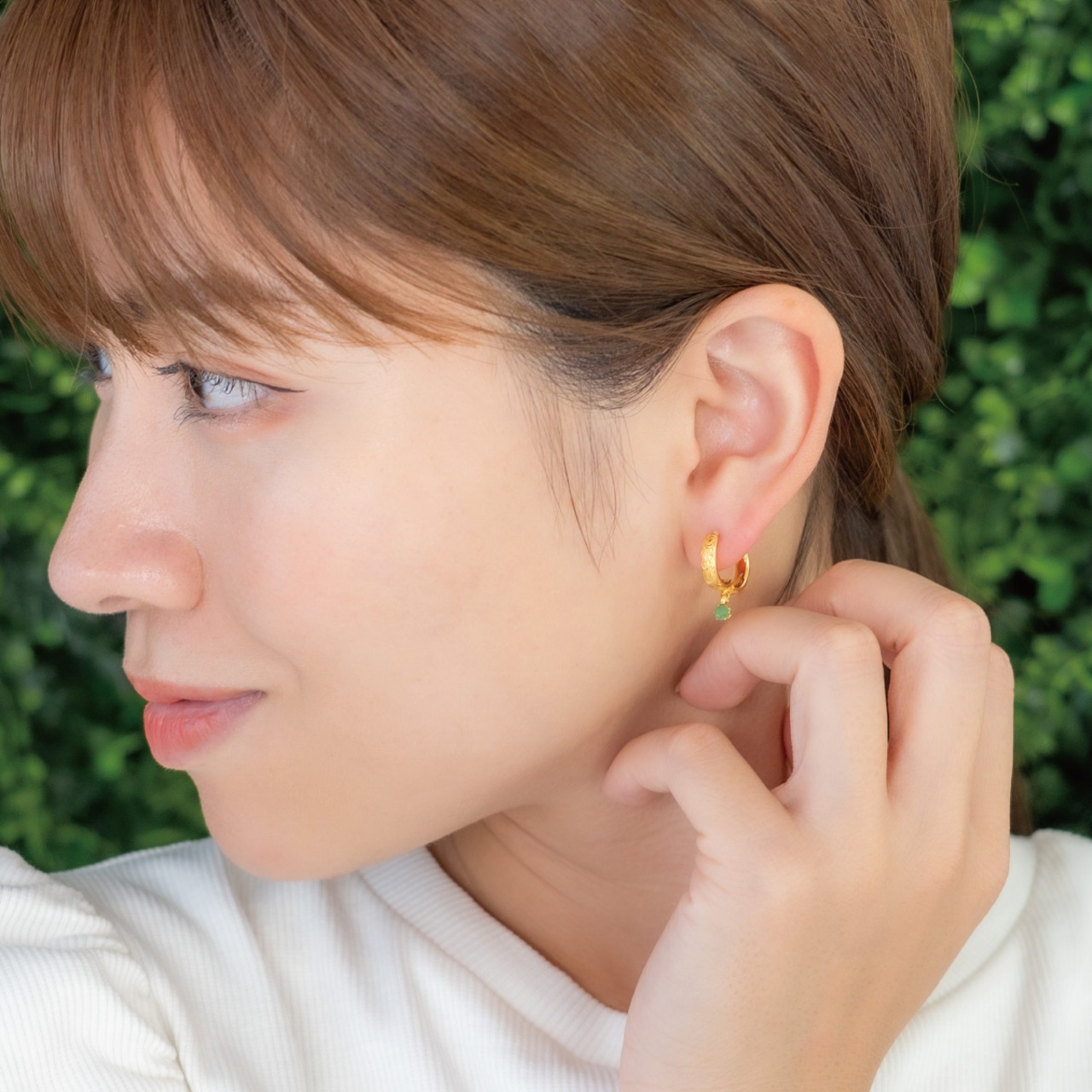 耳元で軽やかに揺れる一粒石は、動くたびに輝きを放ち、