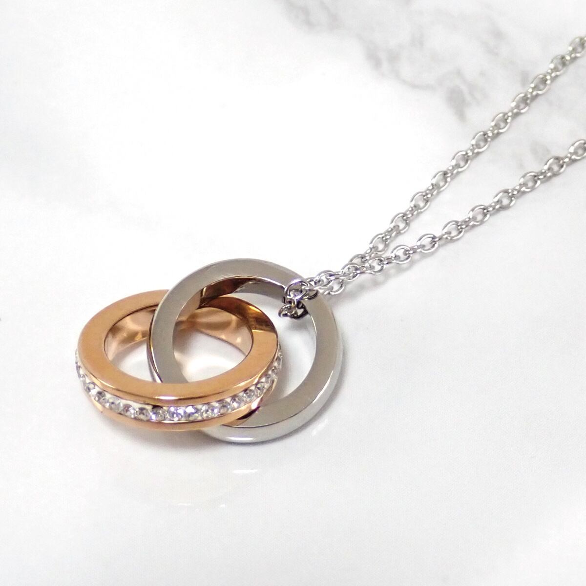 ペンダント ネックレス レディース aabsal-gpss349 サージカルステンレス製 ダブルリング 二連リング 上品 シンプル お肌に優しい 金属アレルギー対応 金アレ かわいい プレゼント ギフト メール便送料無料