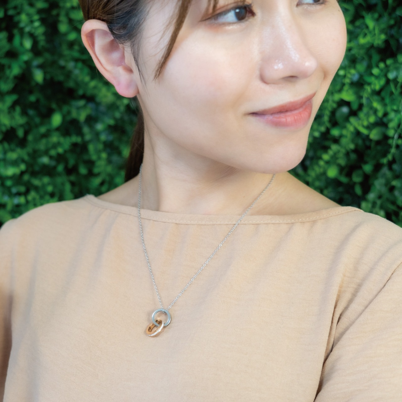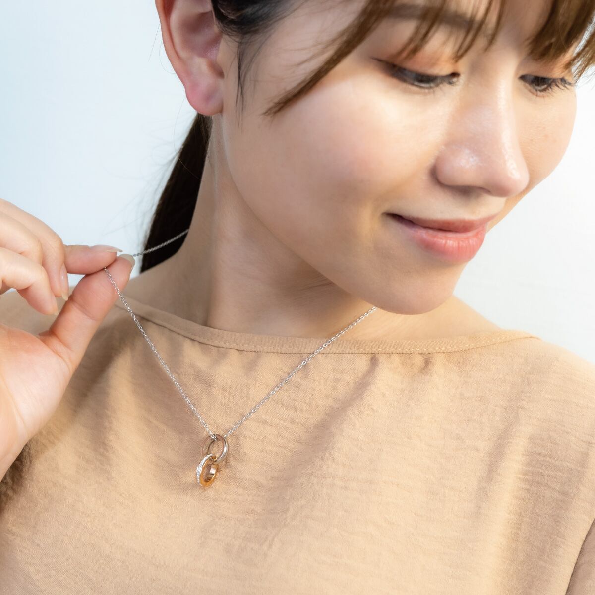 シンプルで艶やかなシルバーカラーのリングが寄り添い、
