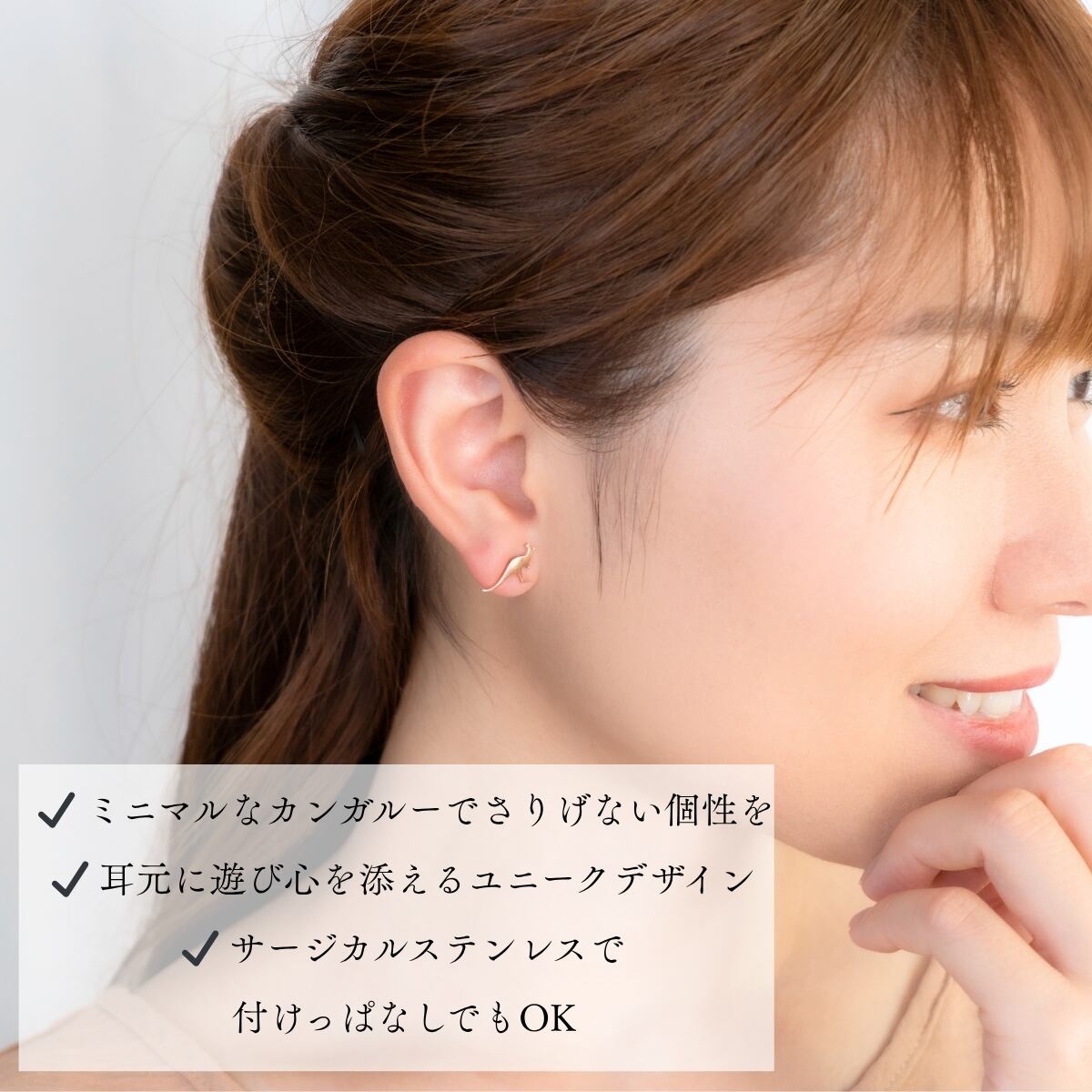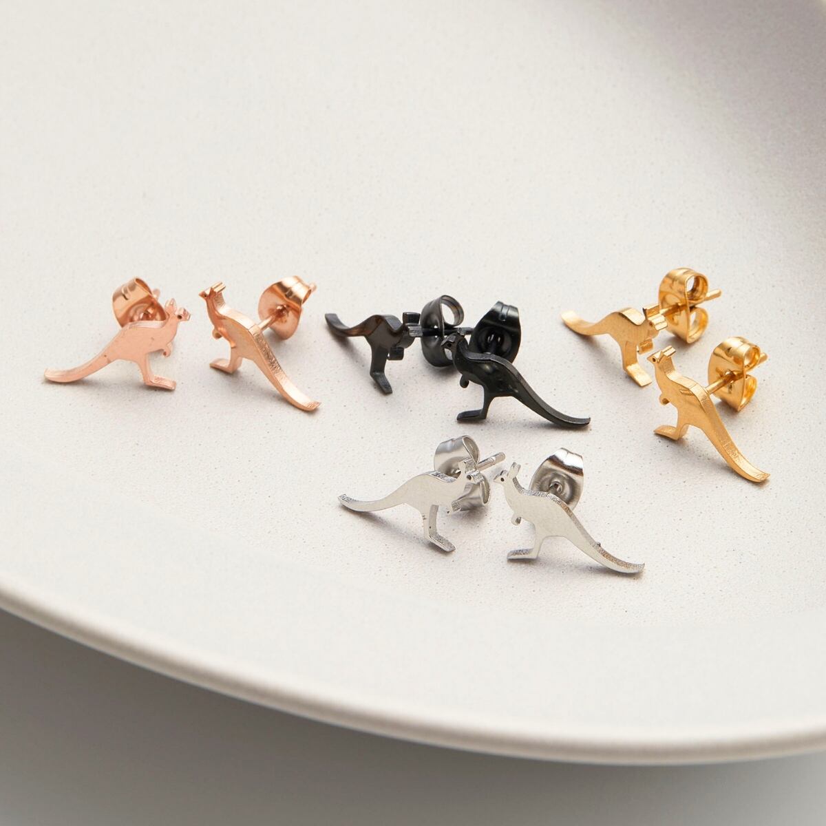 カンガルーをモチーフにしたユニークで遊び心のあるデザインピアス。