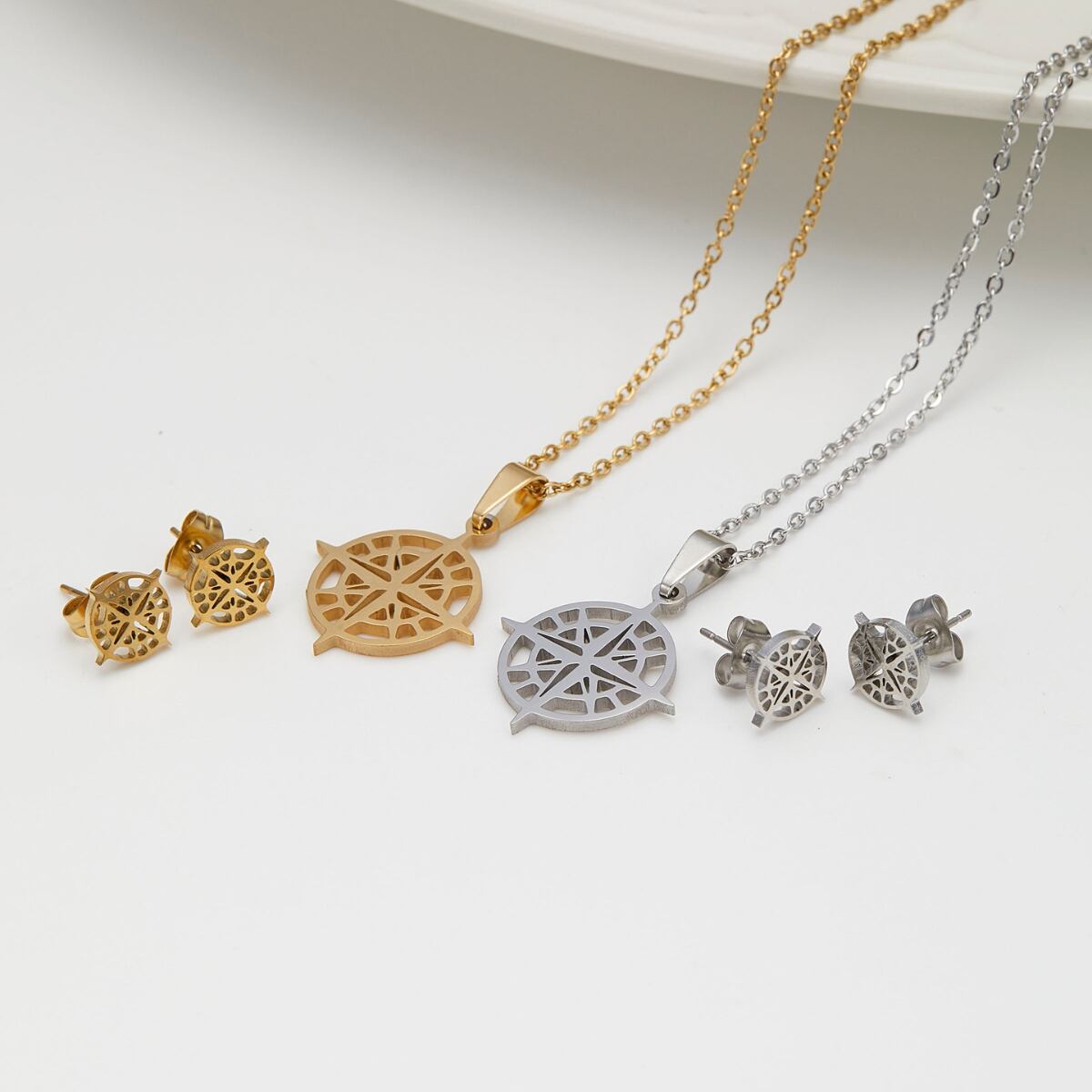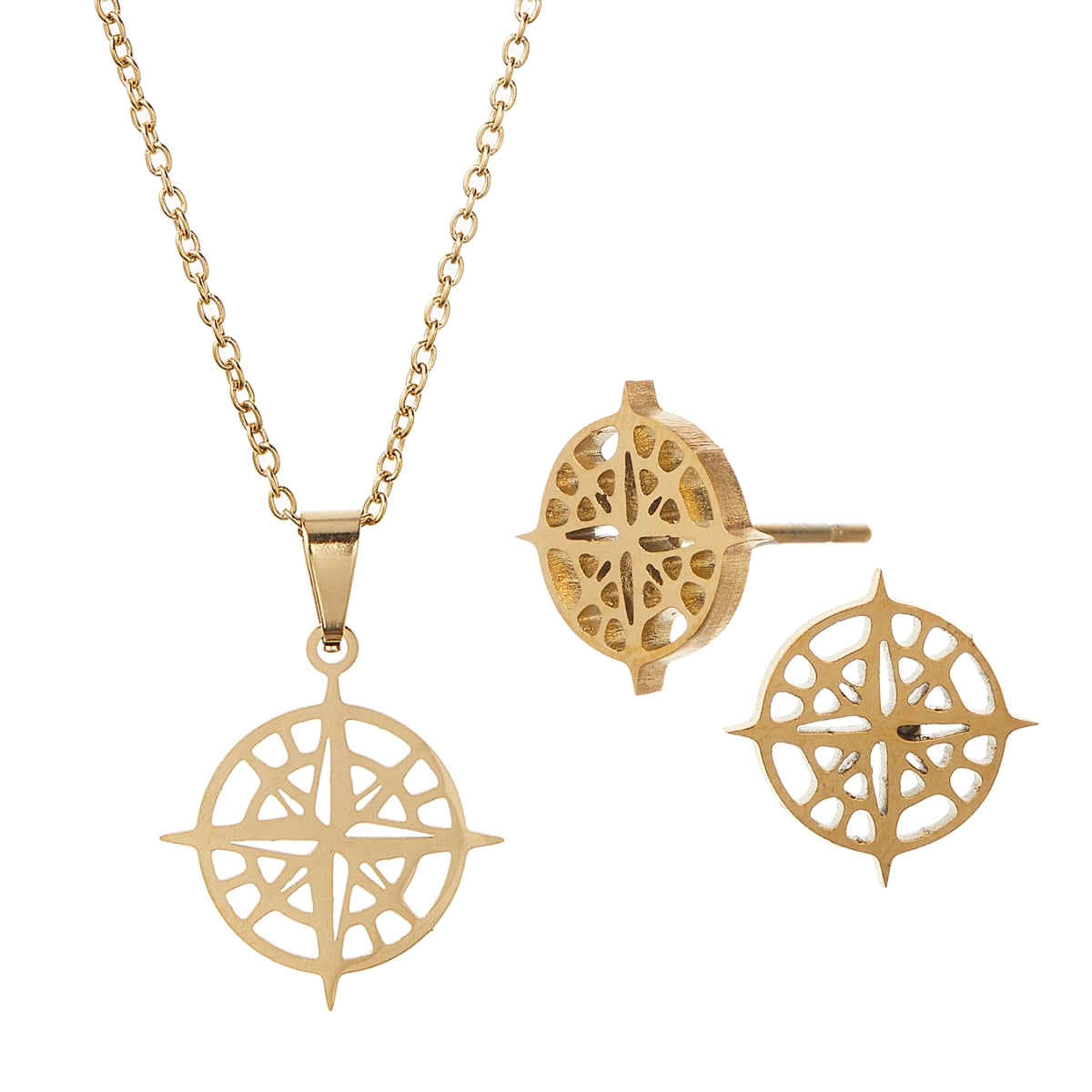 ネックレス ピアス 2点セット ali-2301046 羅針盤 コンパス サージカルステンレス レディース メンズ 金属アレルギー対応 シンプル 上品 大人 旅行 メール便送料無料