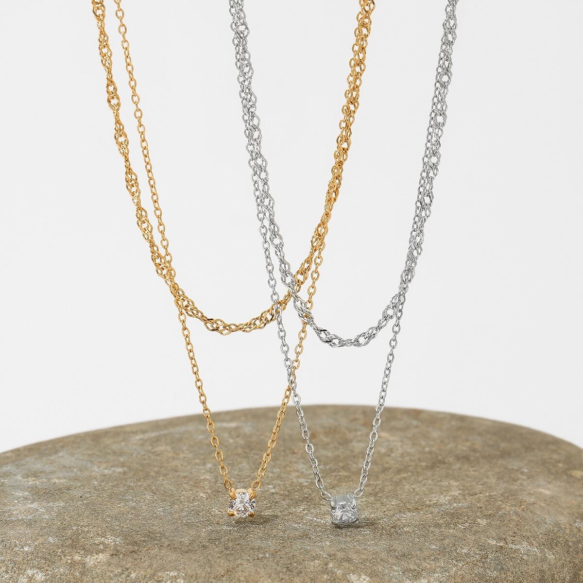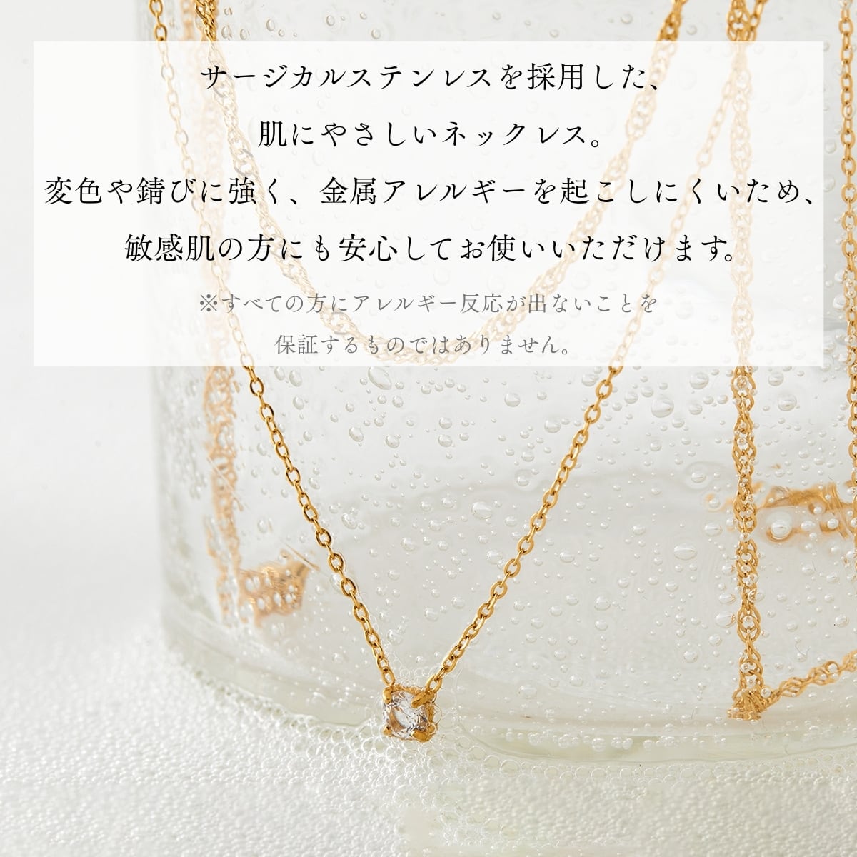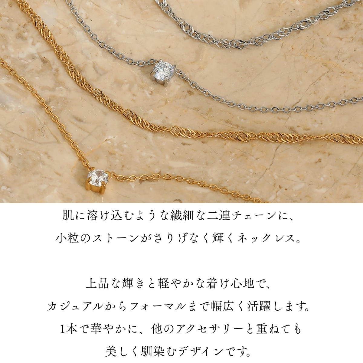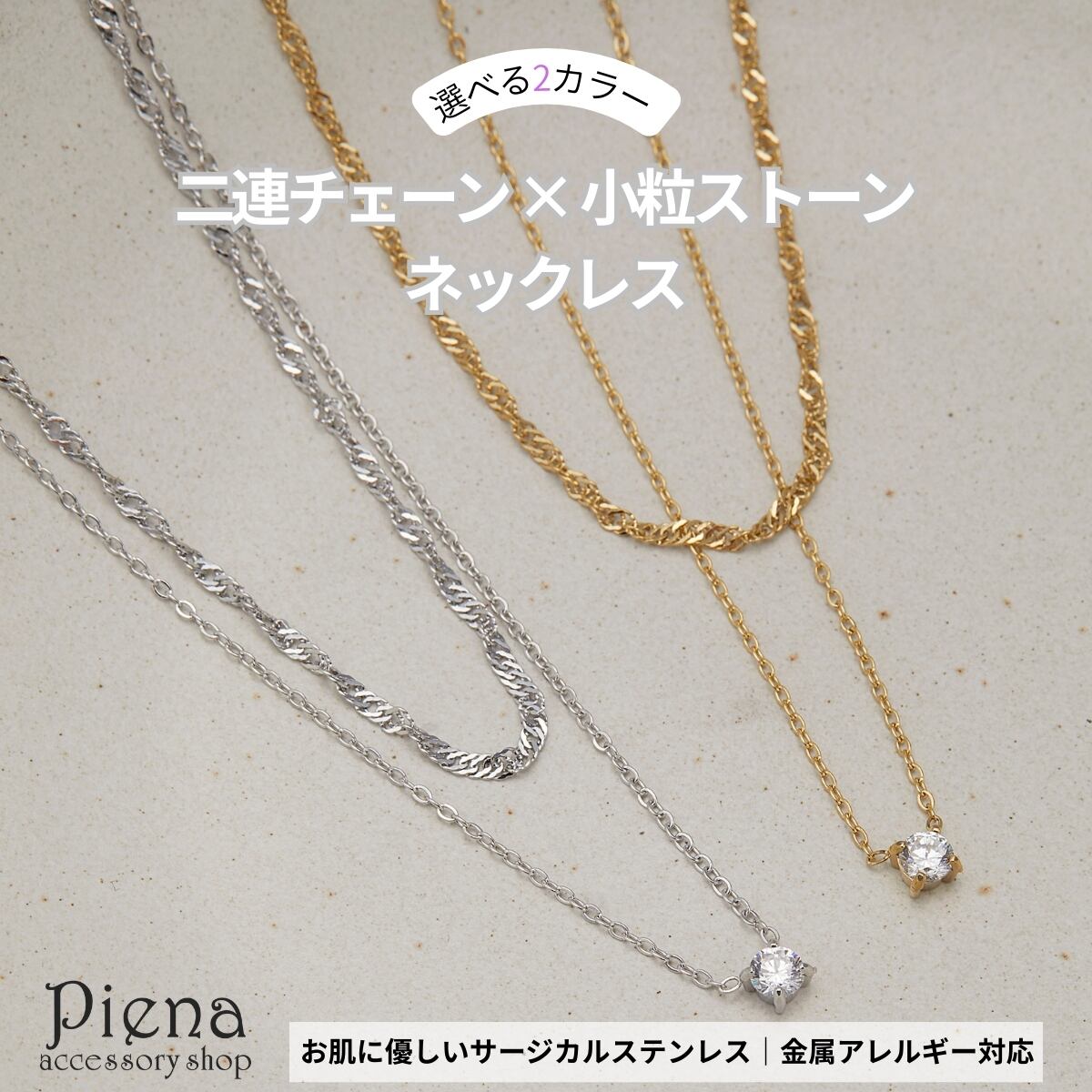 ネックレス 二連チェーン レディース ali-2301134 サージカルステンレス 316L 金属アレルギー対応 一粒 小粒ストーン シンプル 上品 エレガント 重ね付け風 記念日 プレゼント ギフト メール便送料無料