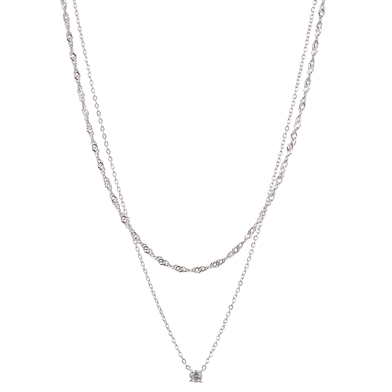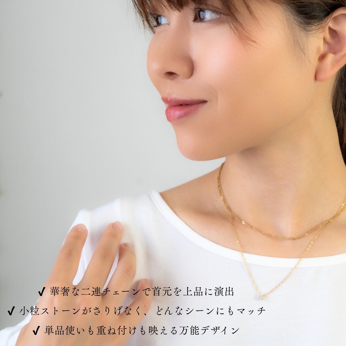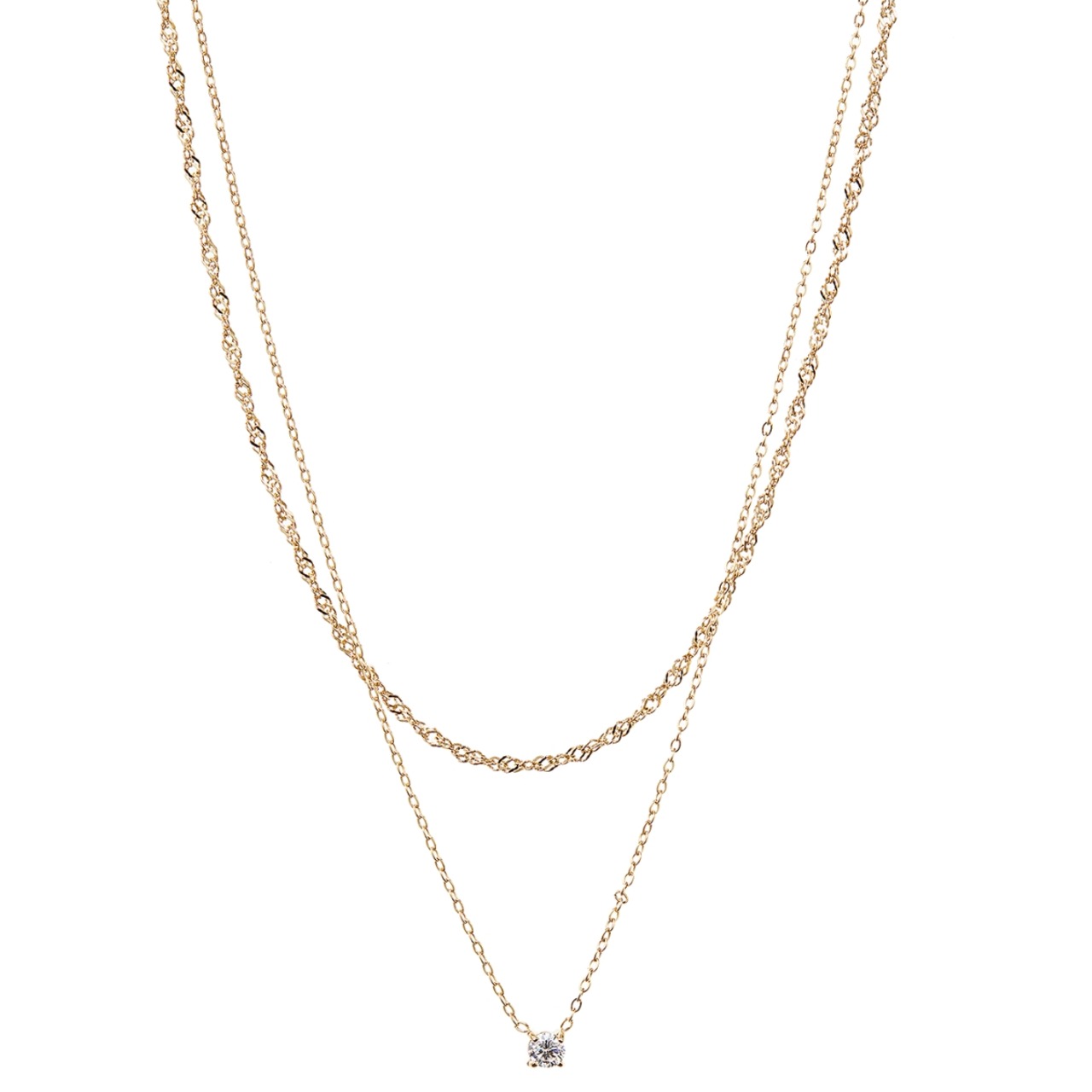 ネックレス 二連チェーン レディース ali-2301134 サージカルステンレス 316L 金属アレルギー対応 一粒 小粒ストーン シンプル 上品 エレガント 重ね付け風 記念日 プレゼント ギフト メール便送料無料