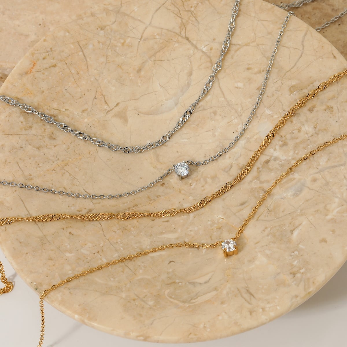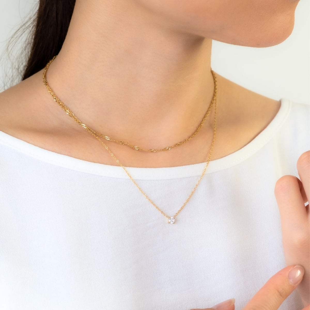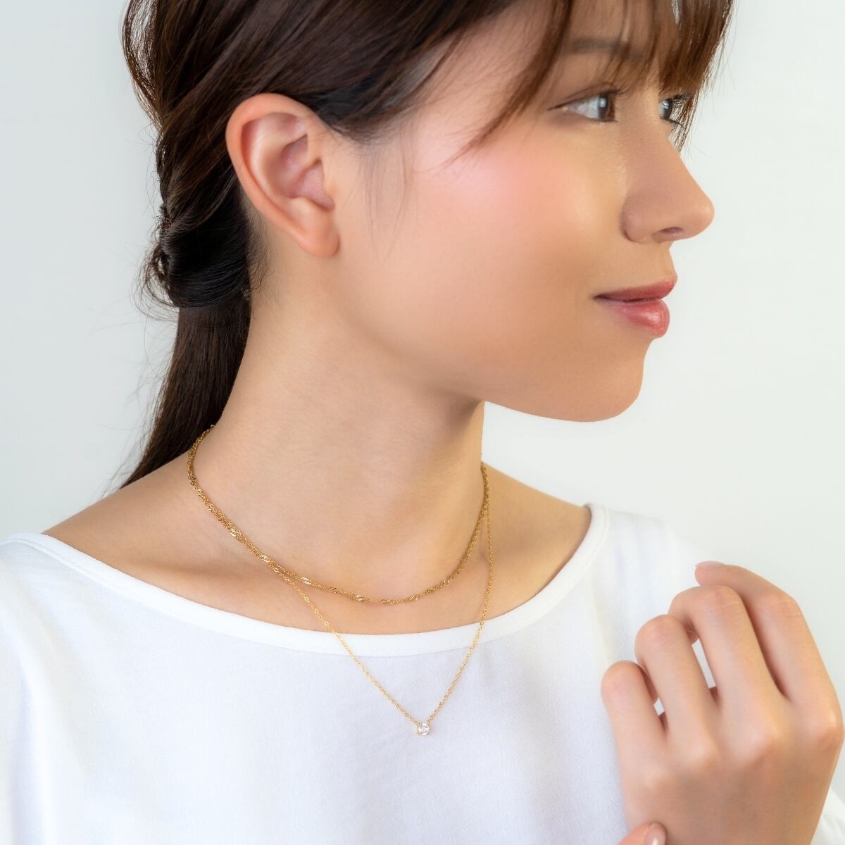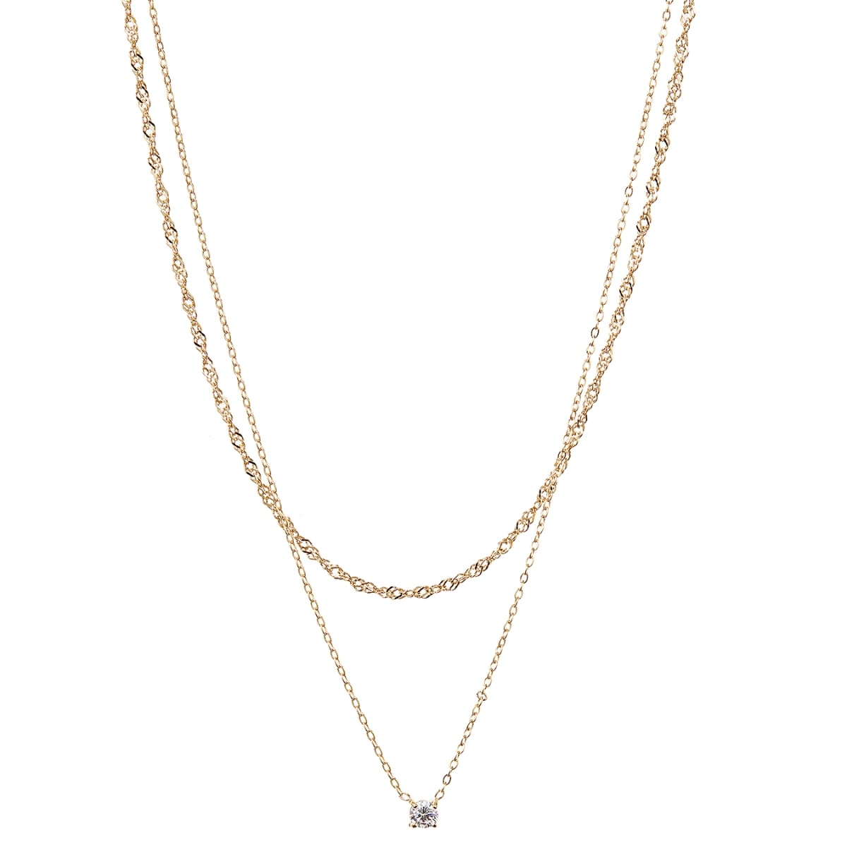 ネックレス 二連チェーン レディース ali-2301134 サージカルステンレス 316L 金属アレルギー対応 一粒 小粒ストーン シンプル 上品 エレガント 重ね付け風 記念日 プレゼント ギフト メール便送料無料