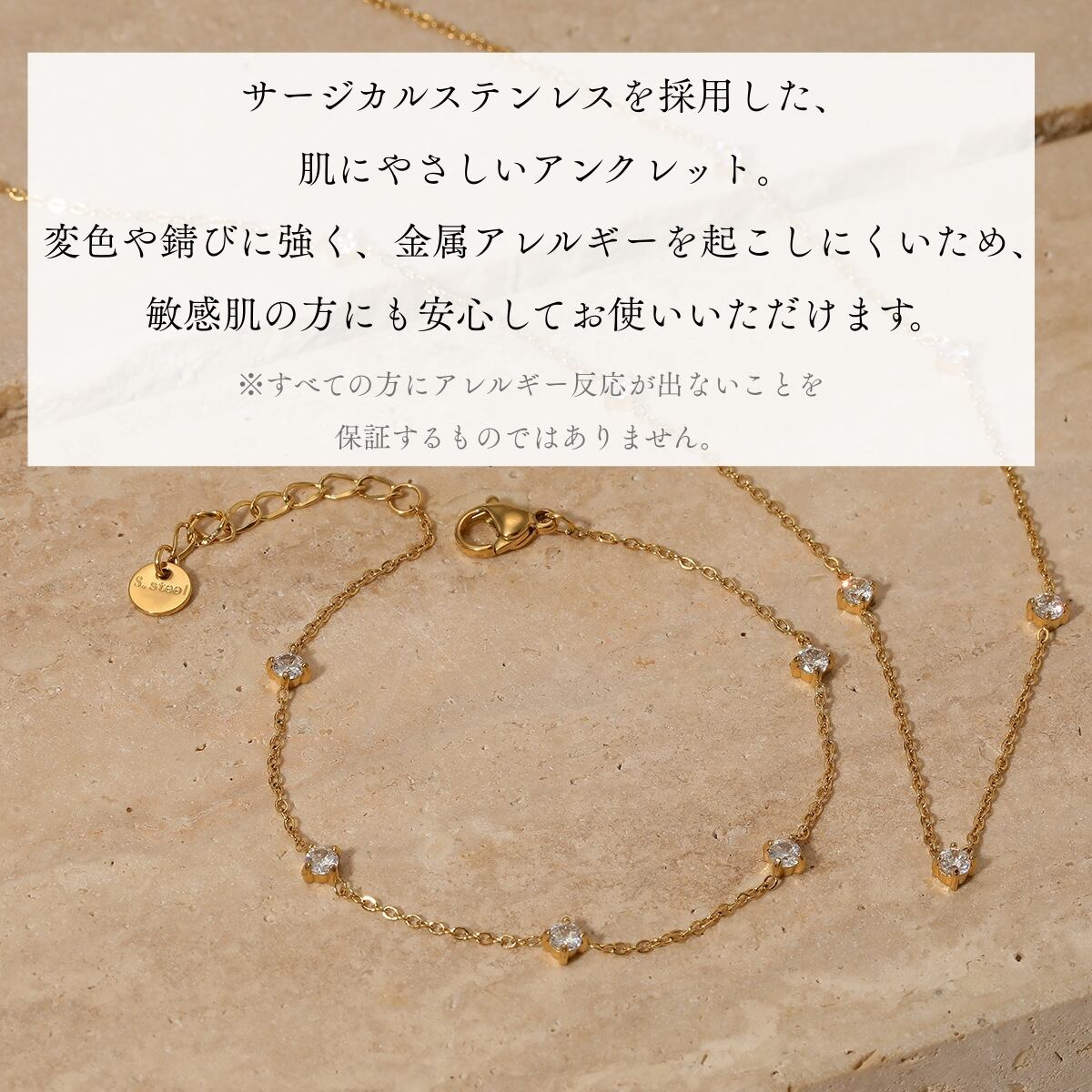 アンクレット レディース ali-2301146 キュービックジルコニア サージカルステンレス つけっぱなしOK 金属アレルギー対応 2カラー チェーン 細め 華奢 ステンレス 重ね付け 記念日 誕生日 メール便送料無料