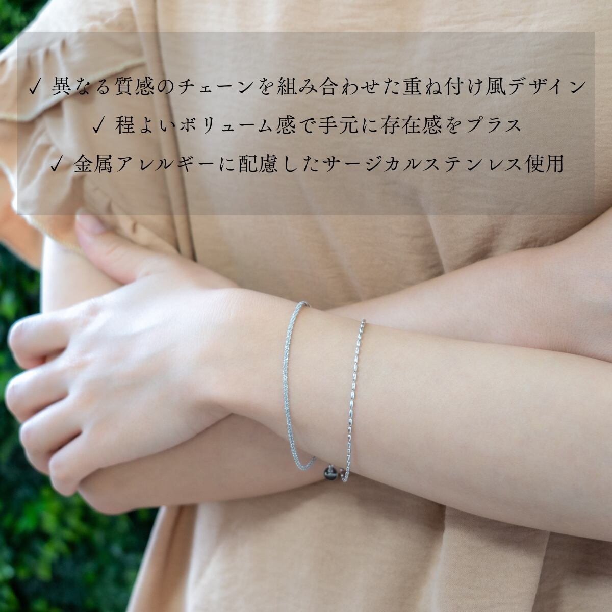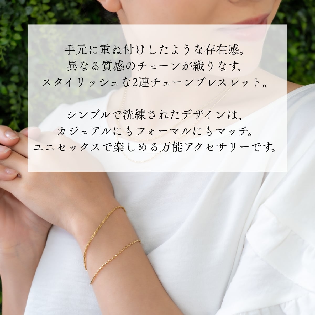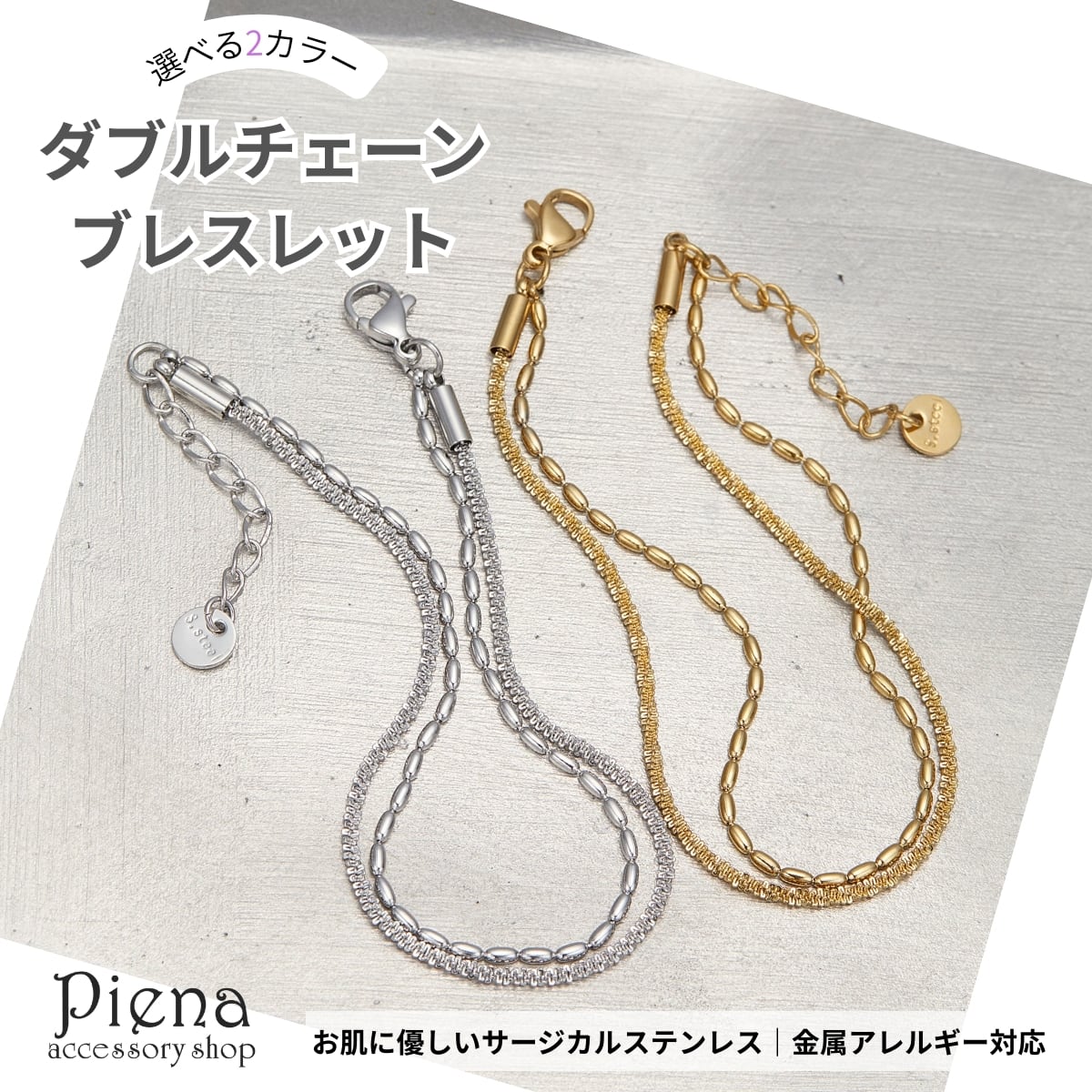 ブレスレット チェーン レディース メンズ ali-2301172 サージカルステンレス ダブルチェーン 2連 シルバー ゴールド 華奢 シンプル 重ね付け風 ペア アクセサリー お肌に優しい 記念日 誕生日 メール便送料無料