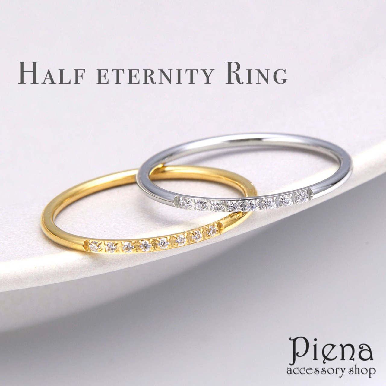 リング 指輪 レディース ali-2301465 サージカルステンレス製 ハーフエタニティ ラインストーン スリム 細め 華奢 お肌に優しい 金属アレルギー対応 金アレ 上品 プレゼント ギフト