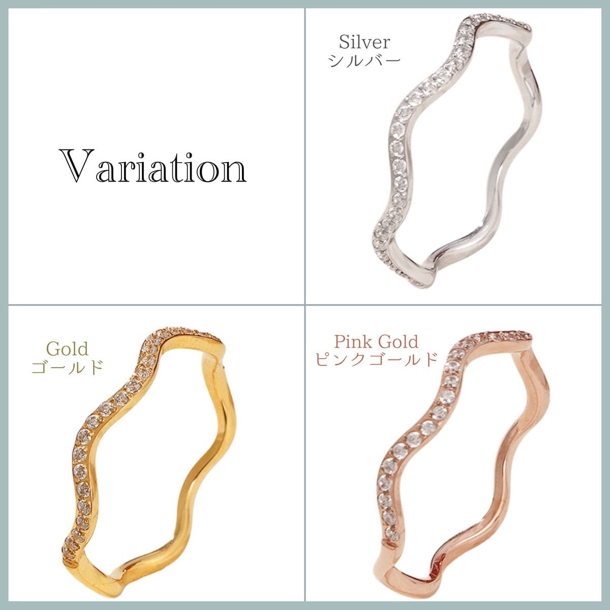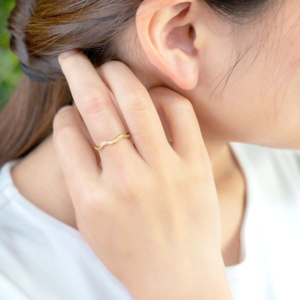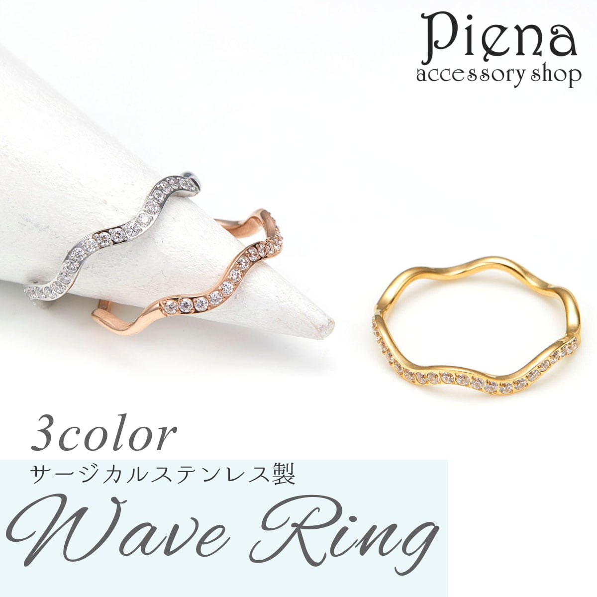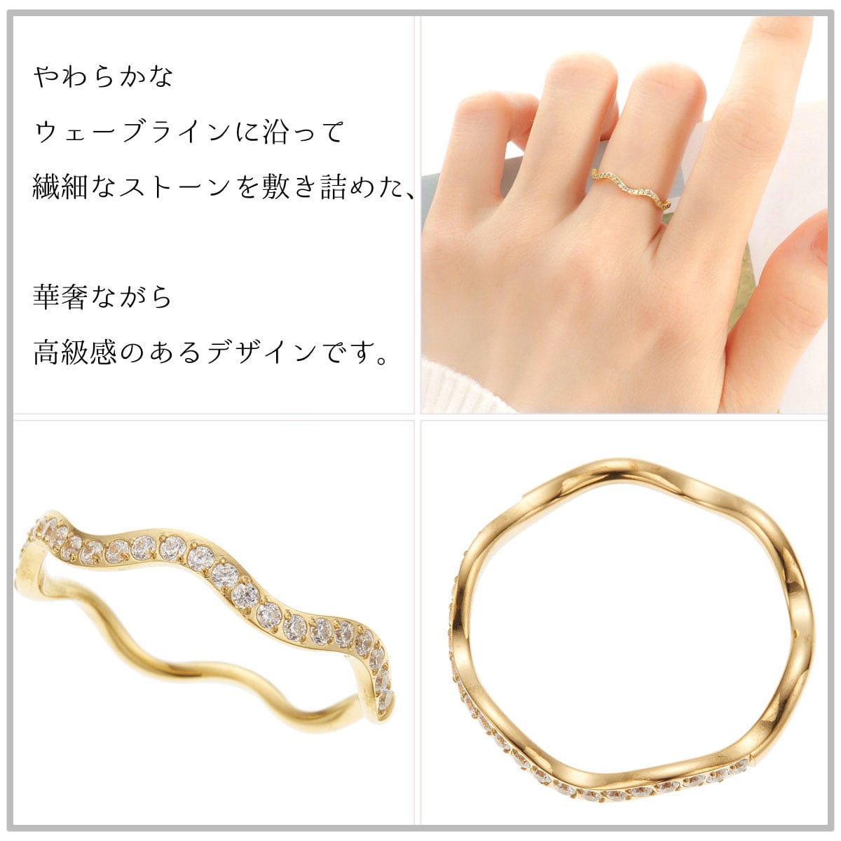 リング 指輪 レディース ali-2301507 サージカルステンレス製 ウェーブ 波 ハーフエタニティ ラインストーン 細め 重ね付け キラキラ お肌に優しい 金属アレルギー対応 オシャレ 誕生日 記念日 プレゼント