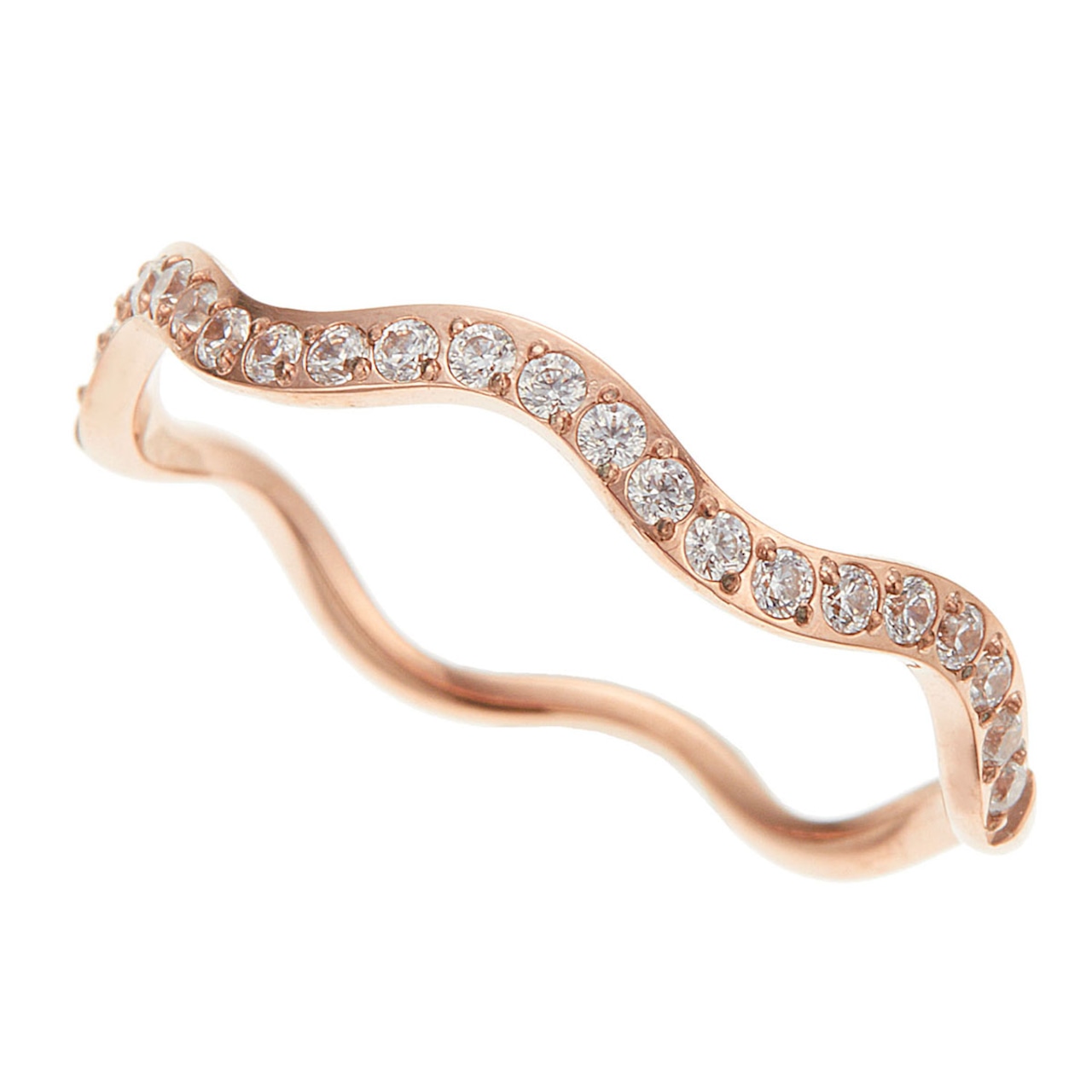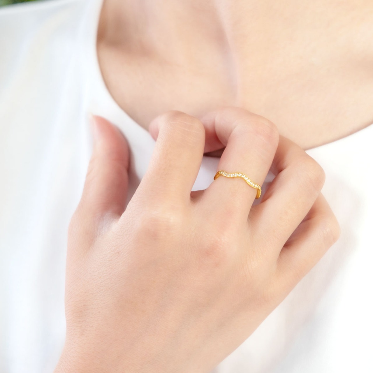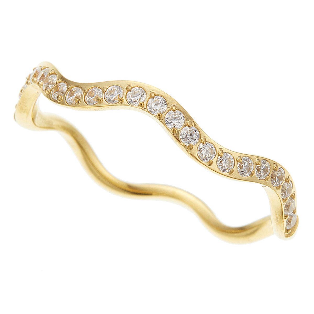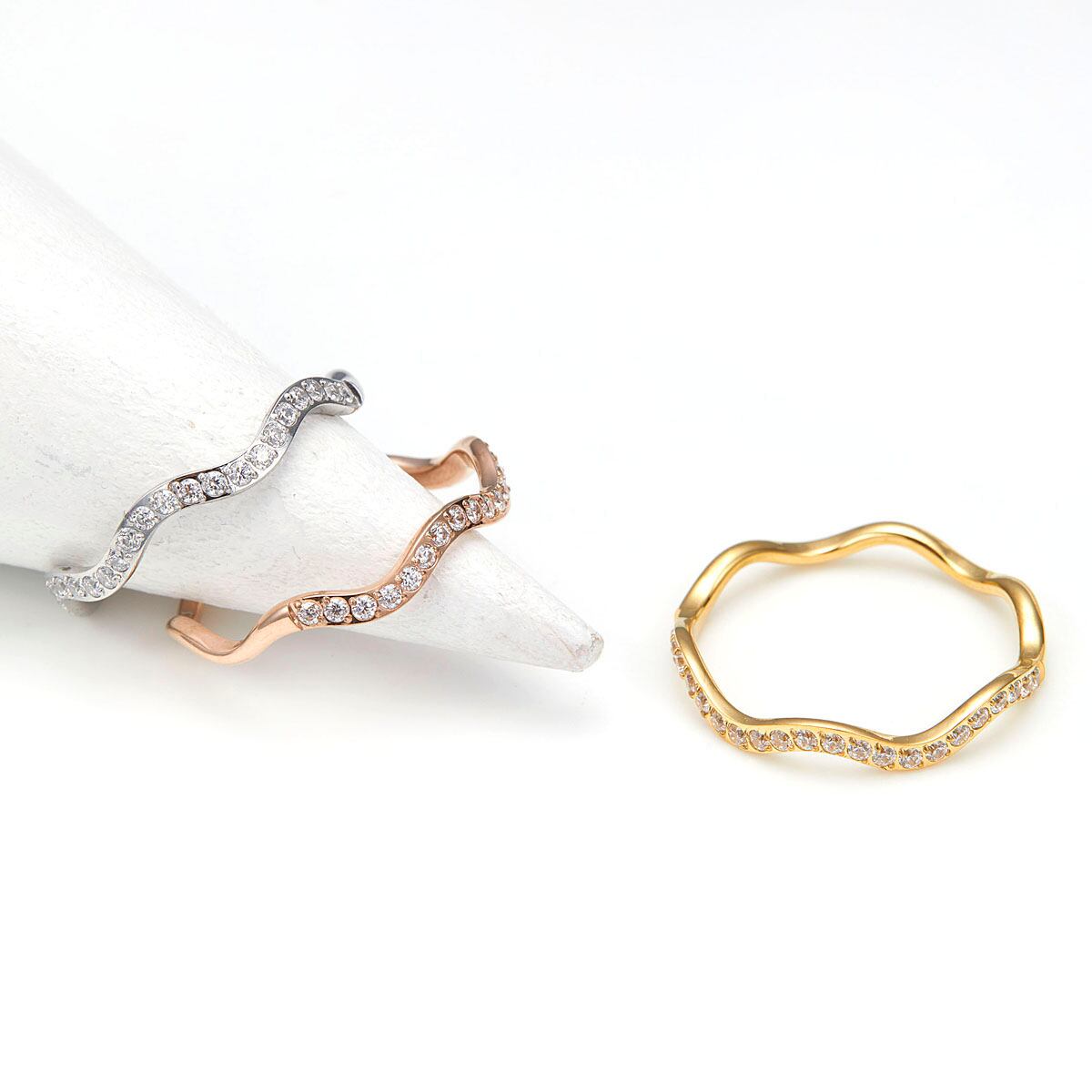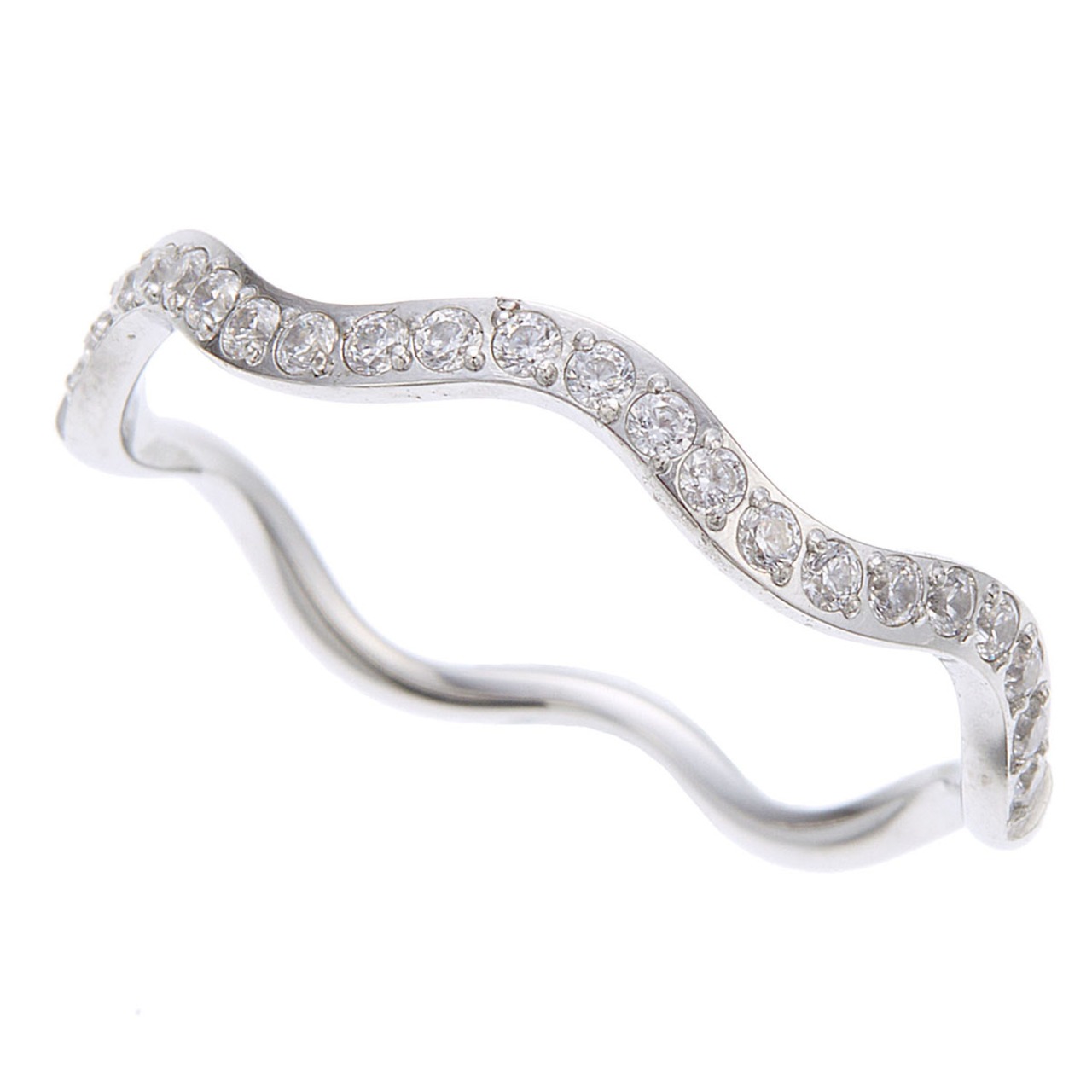 リング 指輪 レディース ali-2301507 サージカルステンレス製 ウェーブ 波 ハーフエタニティ ラインストーン 細め 重ね付け キラキラ お肌に優しい 金属アレルギー対応 オシャレ 誕生日 記念日 プレゼント