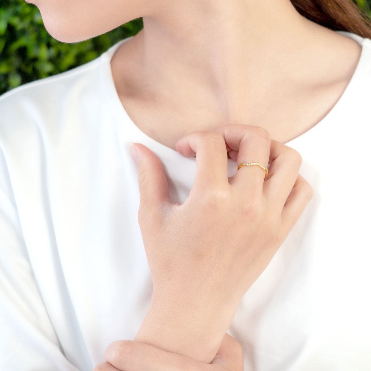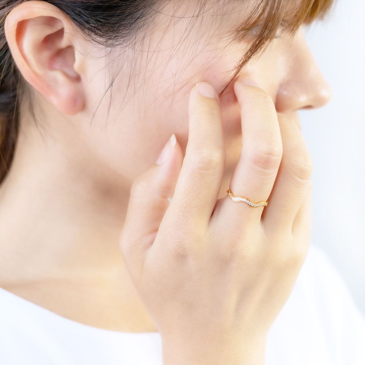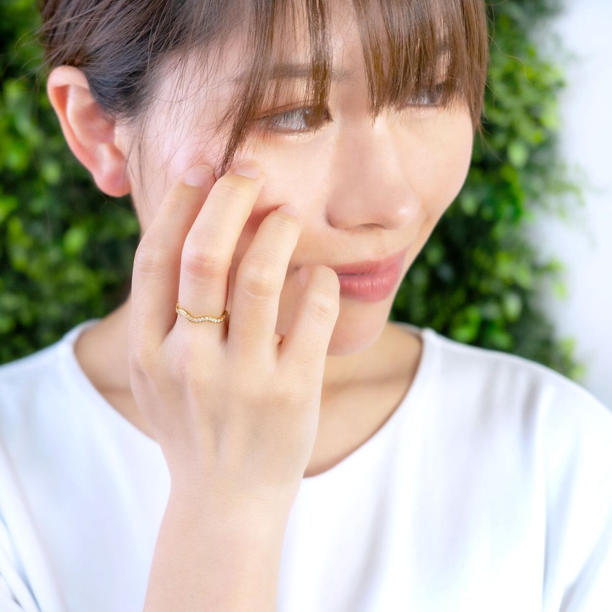 細めのフォルムなので、お手持ちのリングとの組み合わせや