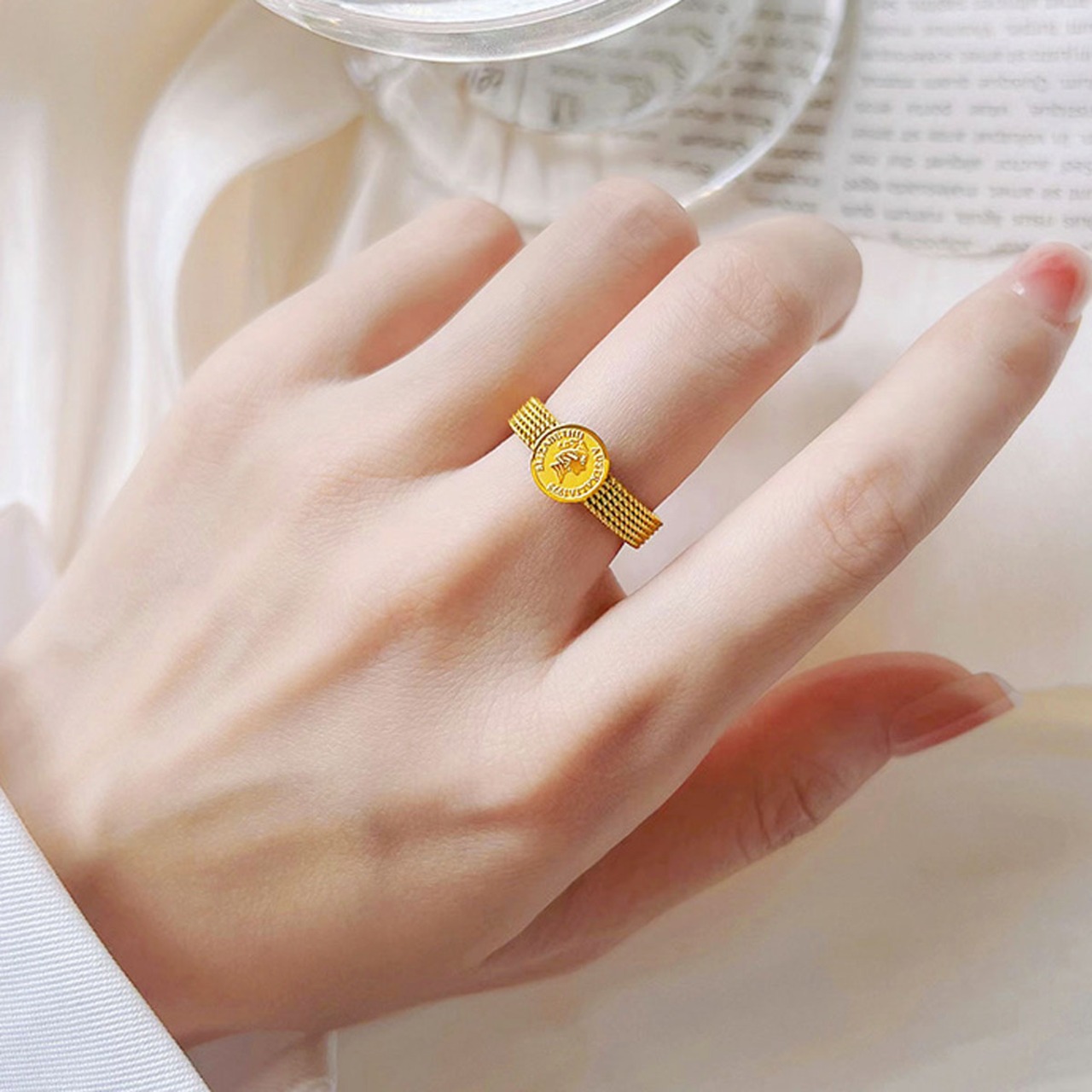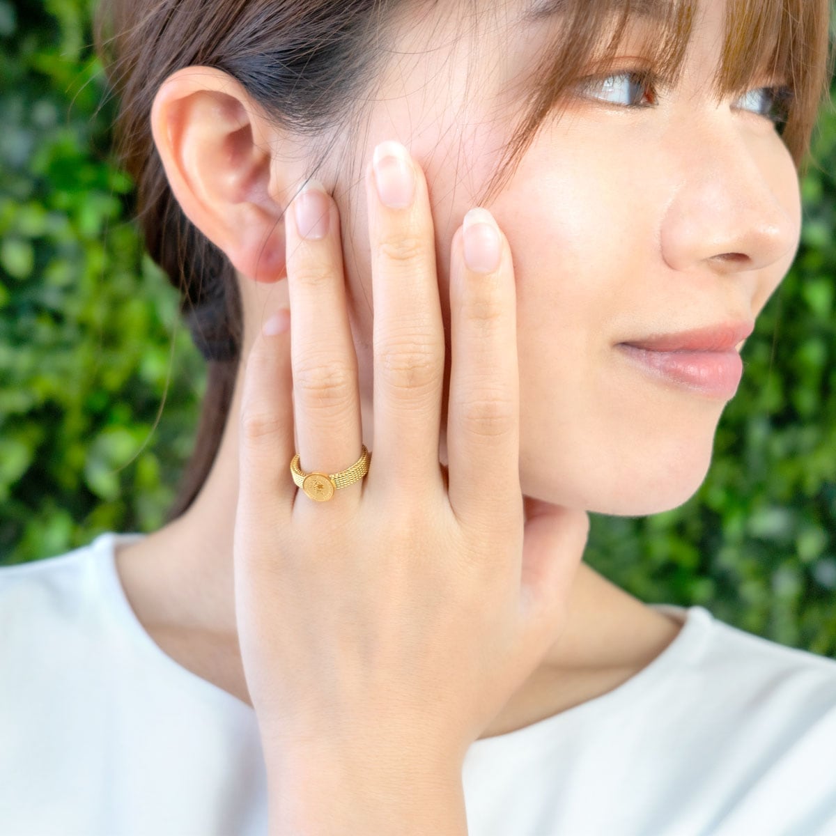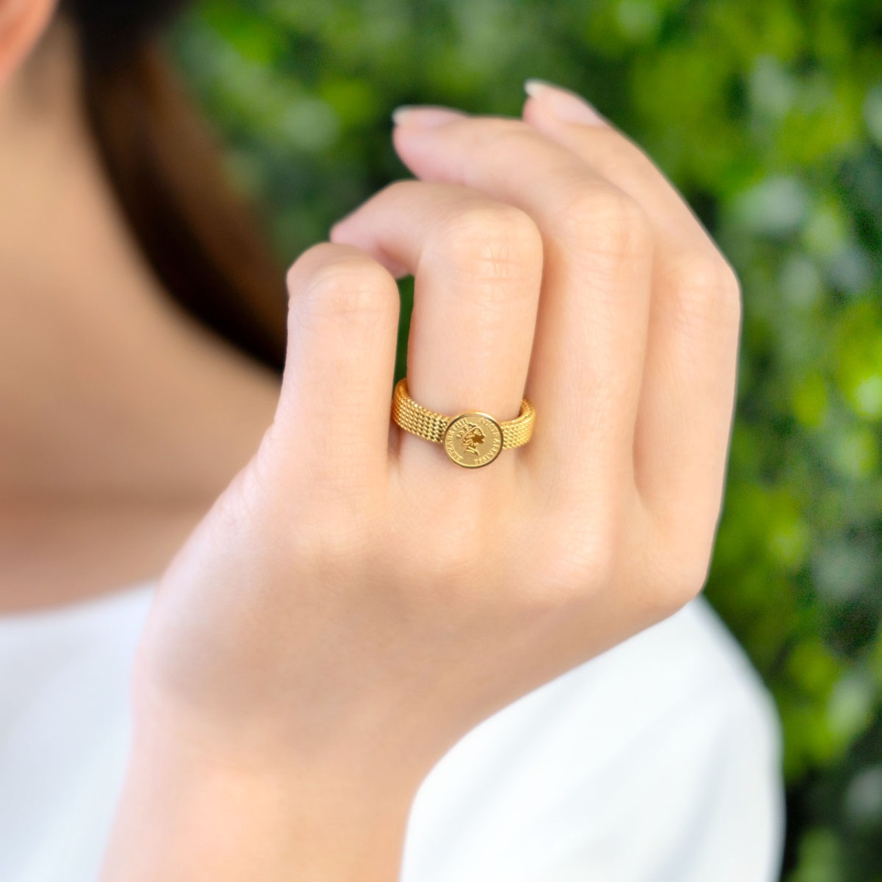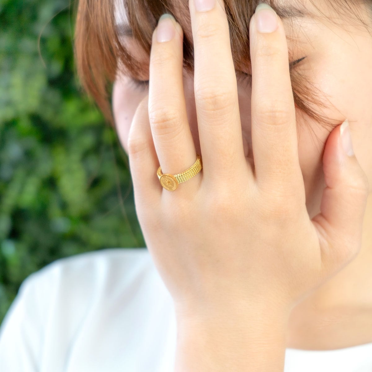 プチサイズの金貨が輝くクラシカルなコインリング。
