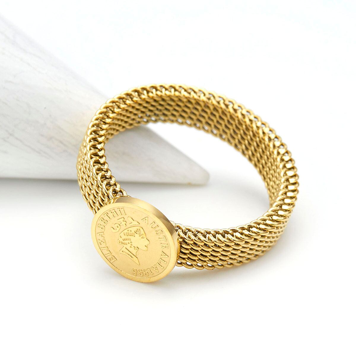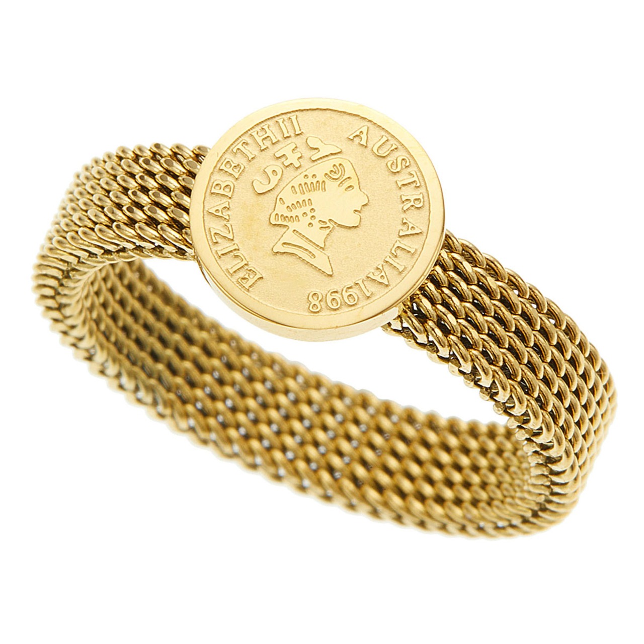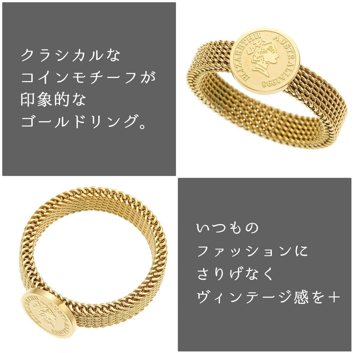 リング レディース ali-2301549 サージカルステンレス コイン 金貨 ミニ エリザベス2世 オーストラリア アンティーク風 ゴールド お肌に優しい 金属アレルギー対応 記念日 プレゼント ギフト