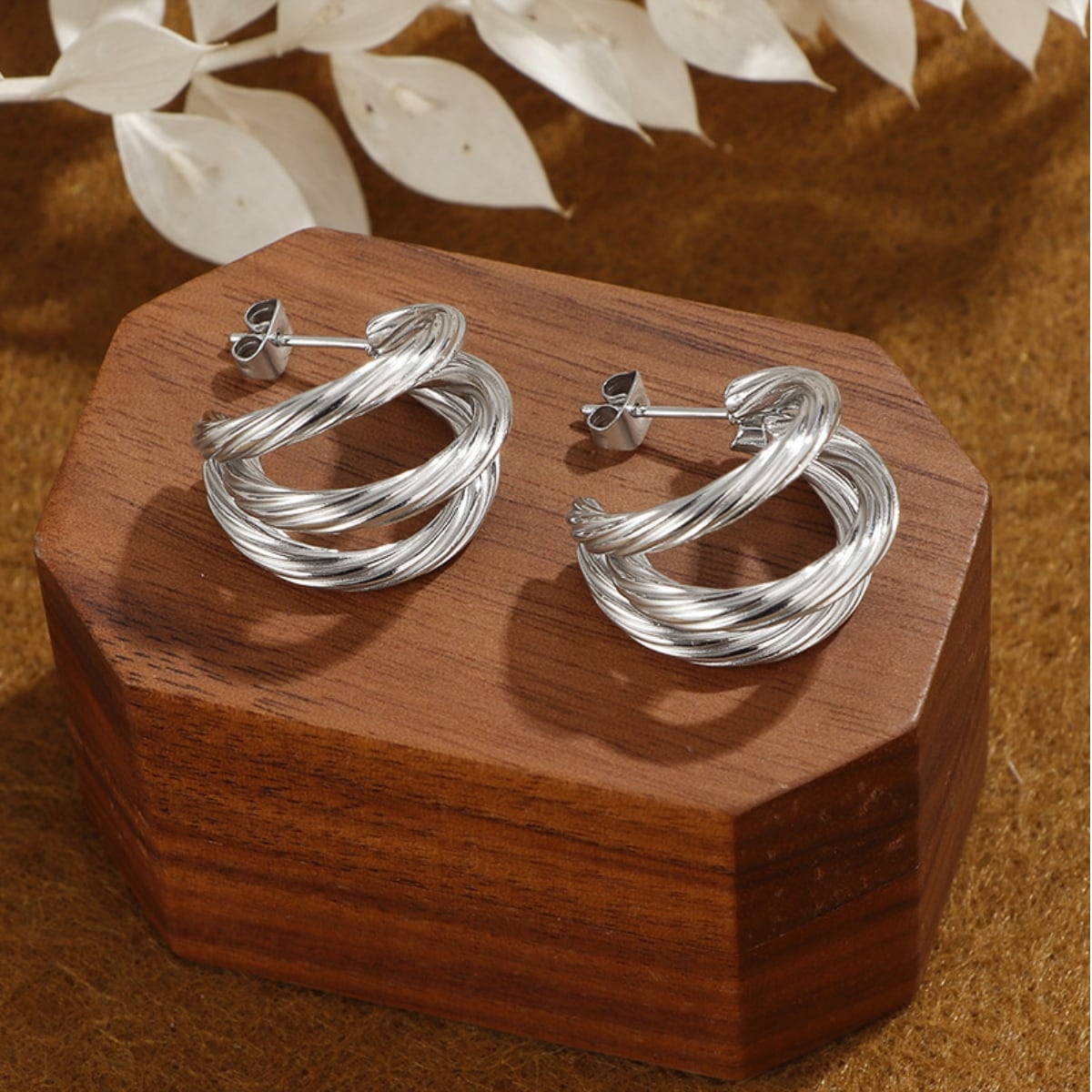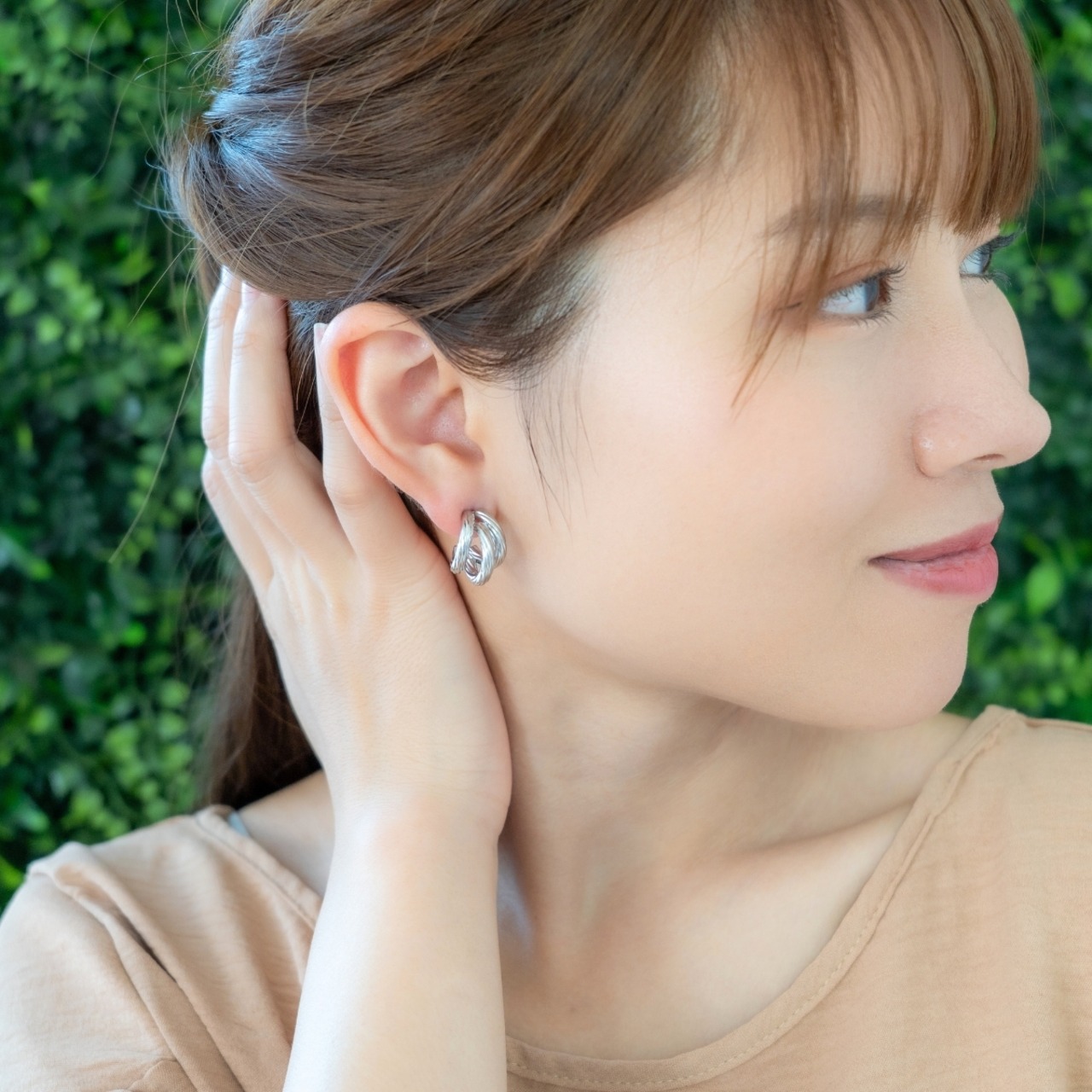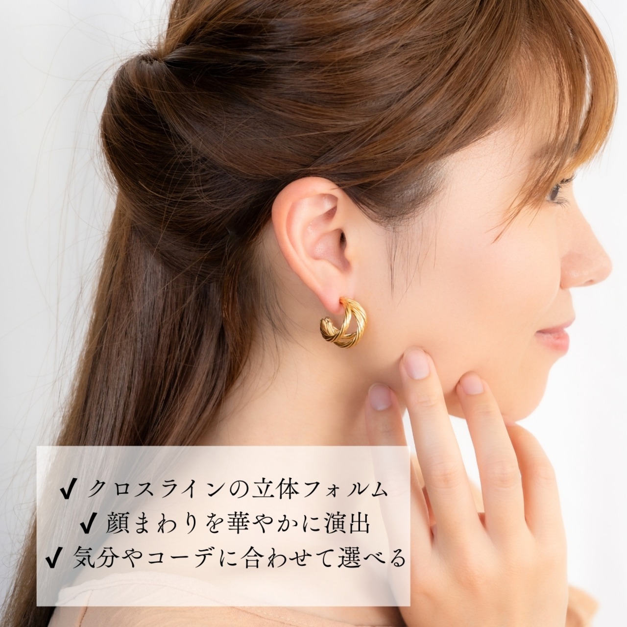 立体感のあるツイストデザインが特徴のハーフフープピアス。