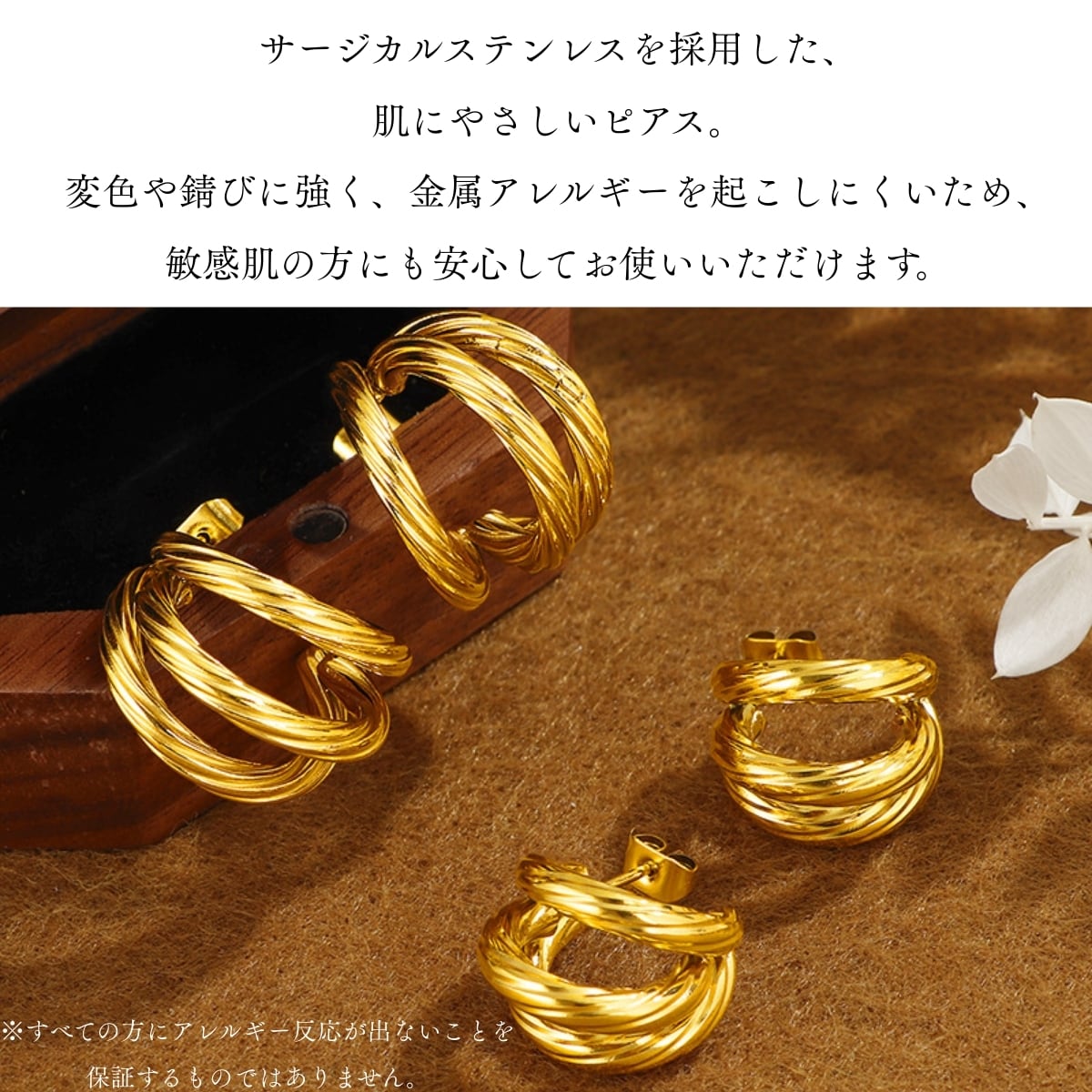 ピアス レディース メンズ ali-2301553 ハーフフープピアス ツイスト ペア ユニセックス サージカルステンレス 金属アレルギー対応 シルバー ゴールド シンプル プレゼント ギフト 両耳用 メール便送料無料