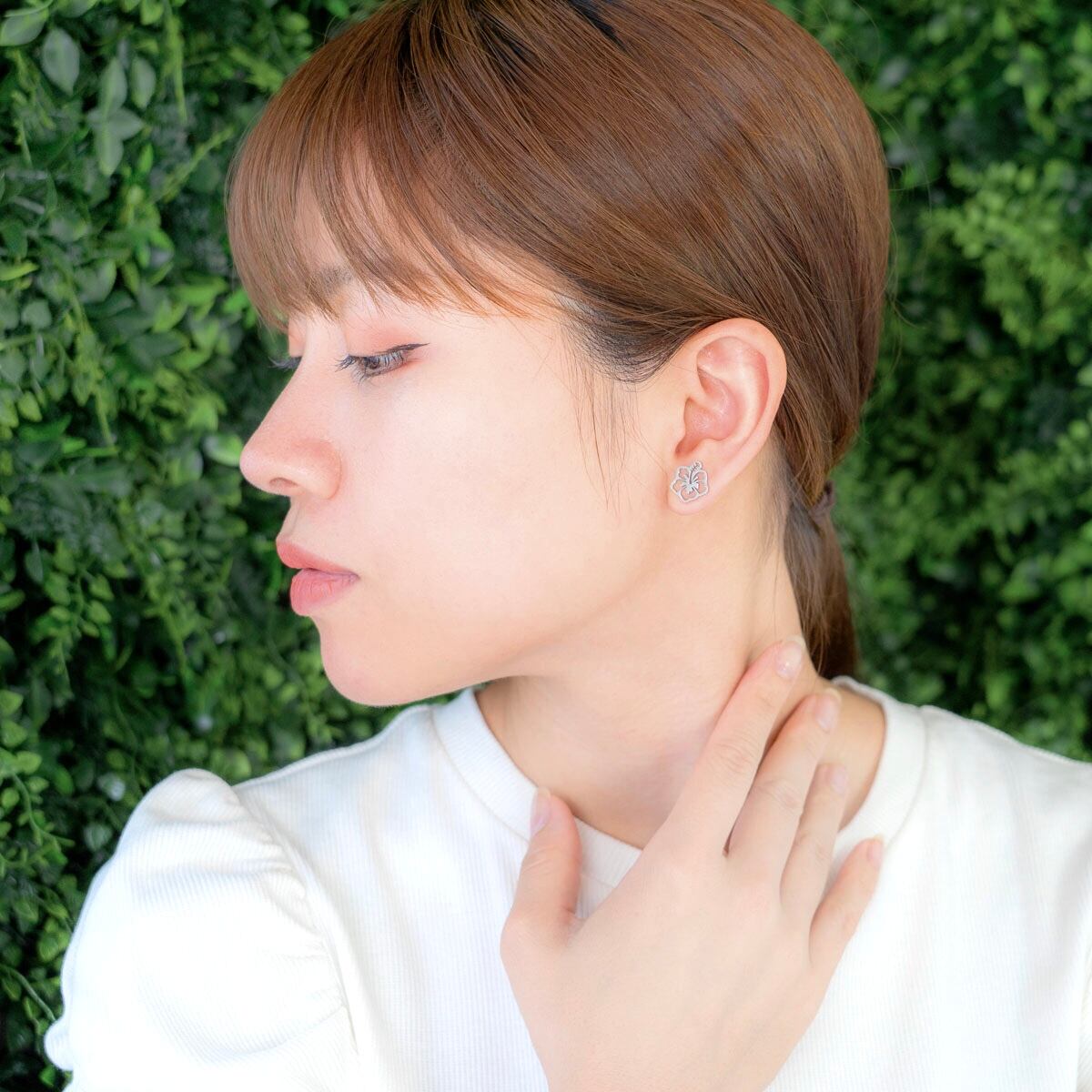 南国の花、ハイビスカスモチーフのピアス。