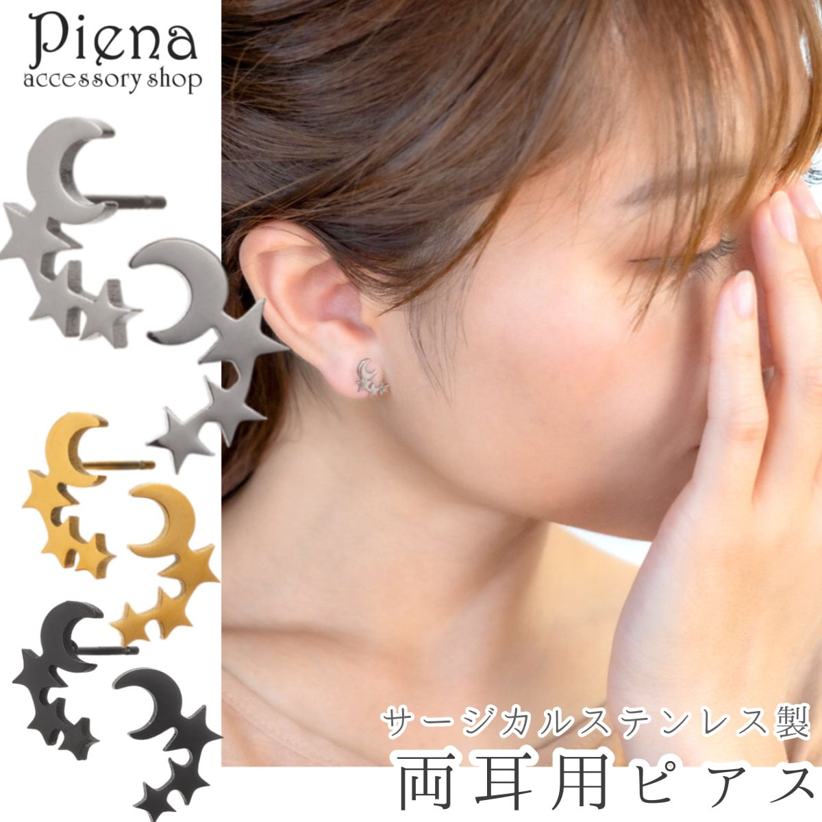 ピアス レディース ali-2301571 サージカルステンレス製 星 月ムーン スター シンプル お肌に優しい 金属アレルギー対応 金アレ 誕生日 記念日 プレゼント ギフト